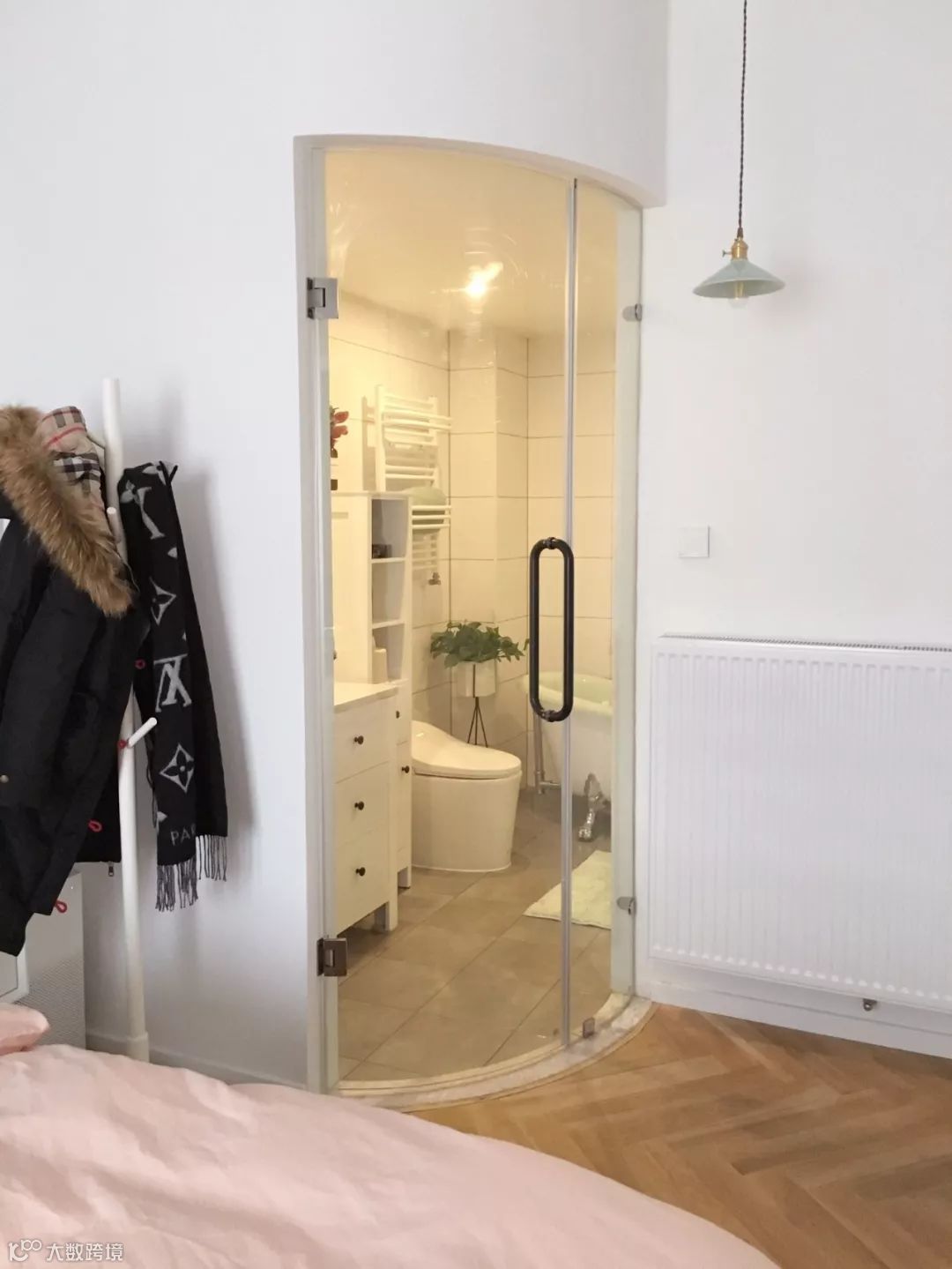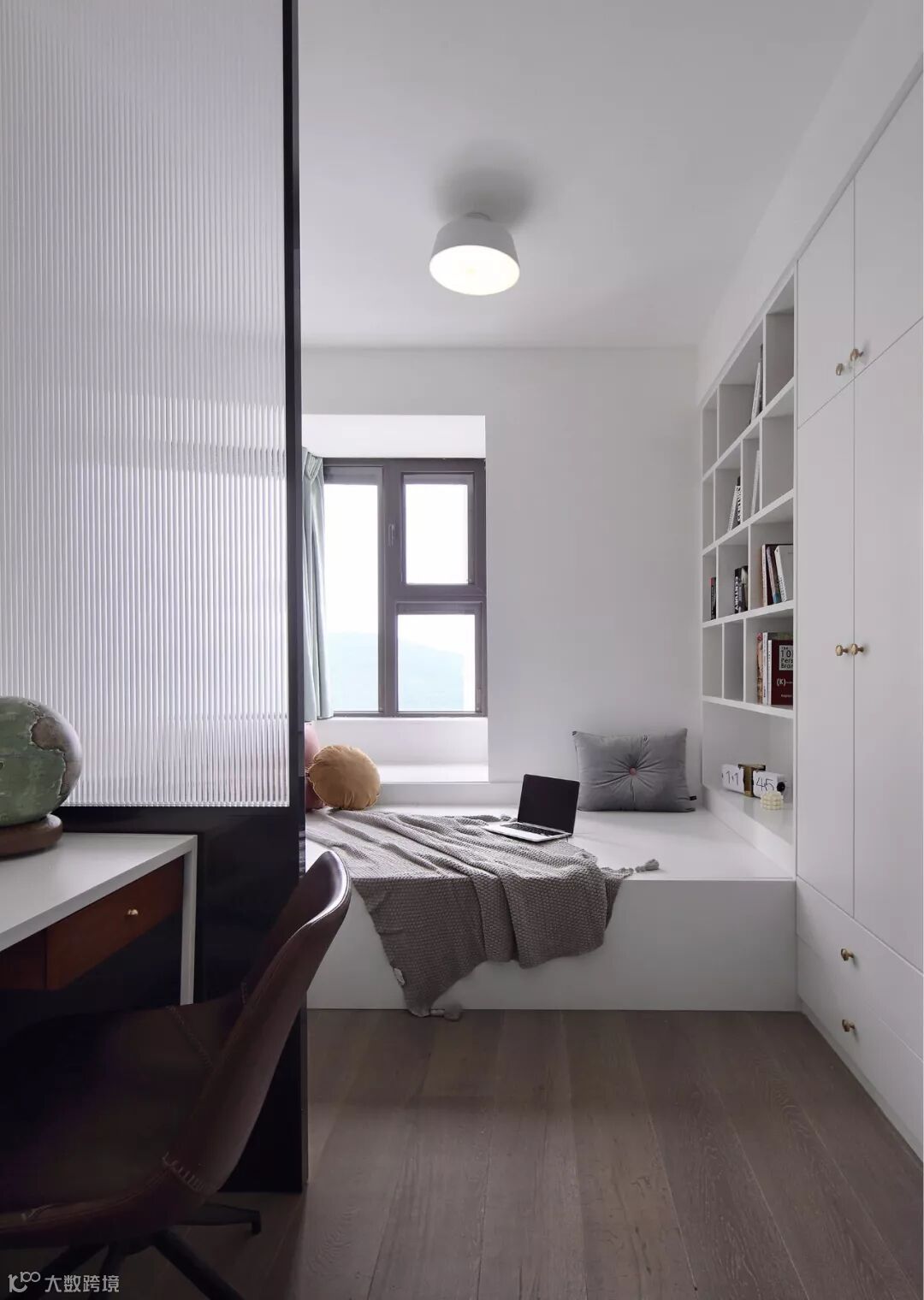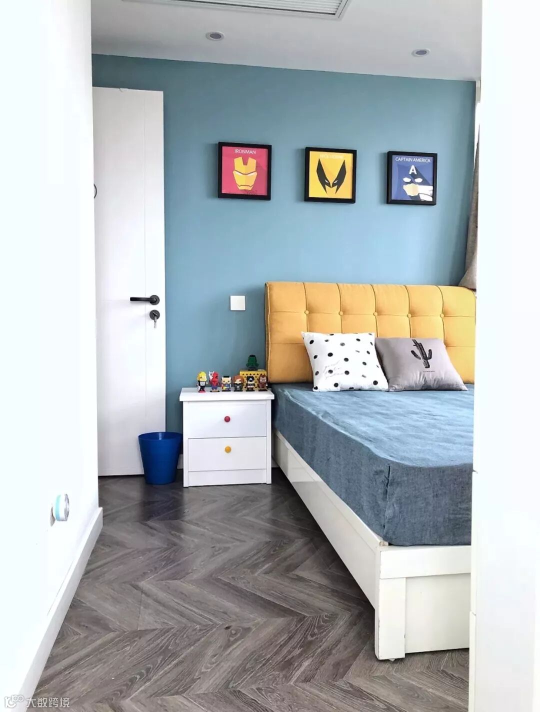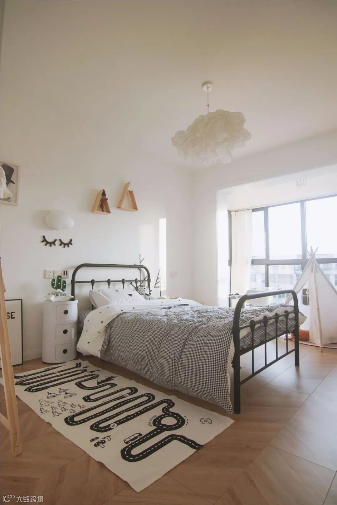如果觉得工字铺没新意,也可以采取人字铺的拼接方式,让常规的木地板也铺贴出充满创意视觉感的效果;不过采用这种铺贴方式的木地板施工,边角处的收口相对难度较大,要找有经验的工人才行。