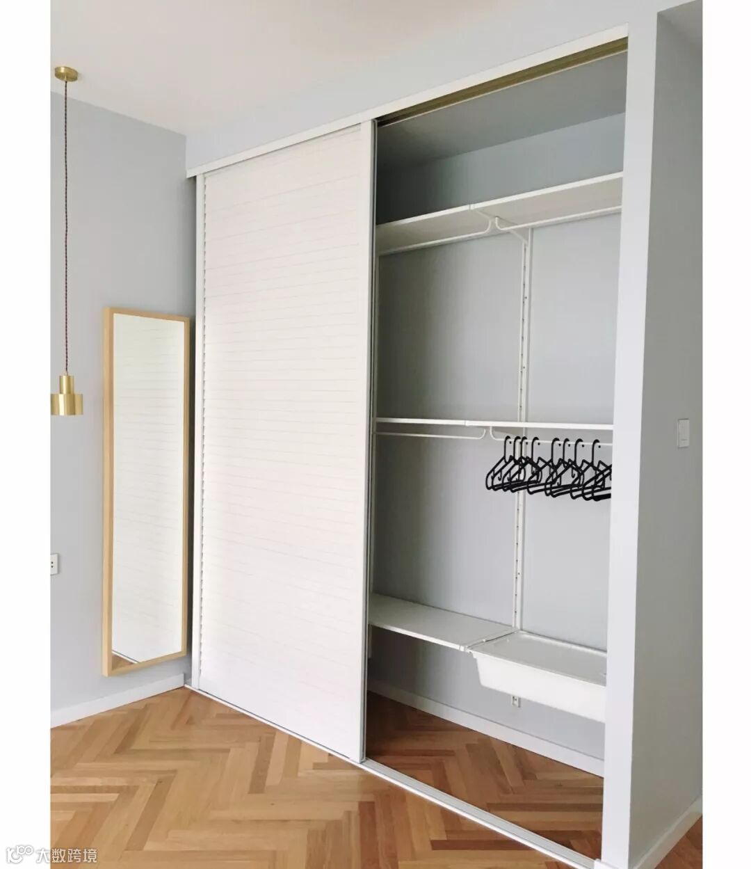 工字铺是比较常规成熟的木地板铺贴拼接方式,这种简洁大方的设计符合大多数人的审美,也比较符合方正空间的搭配。