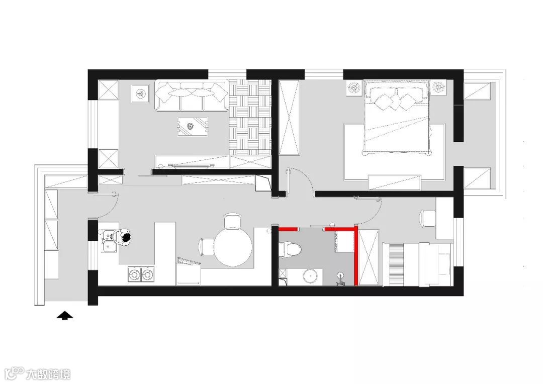 2、将空间布局进行优化,设计开放式厨房;
