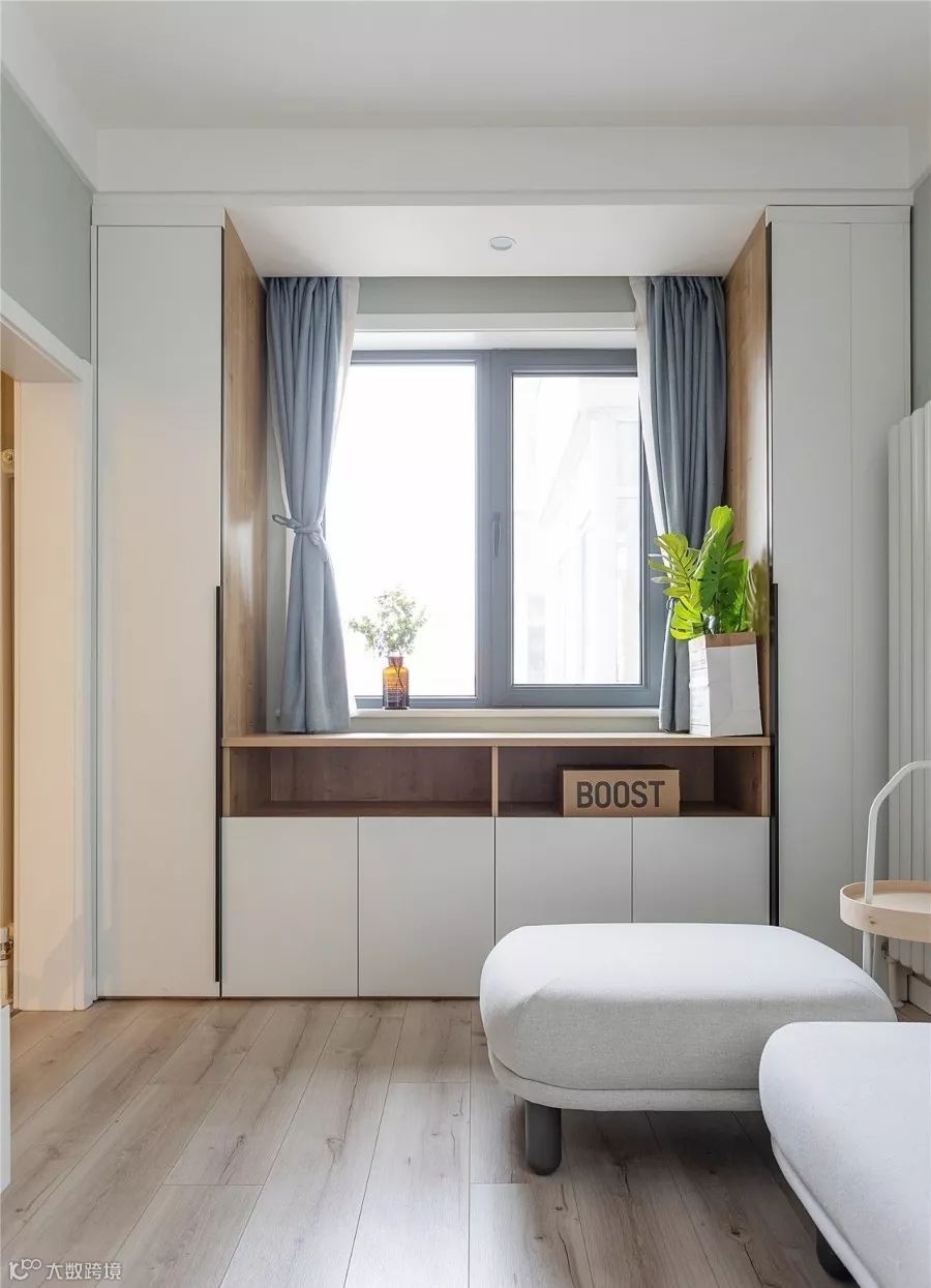 ▲客厅向阳,虽然窗户不大,采光却非常好,窗台下也做了收纳设计,将每一寸空间利用到极致。