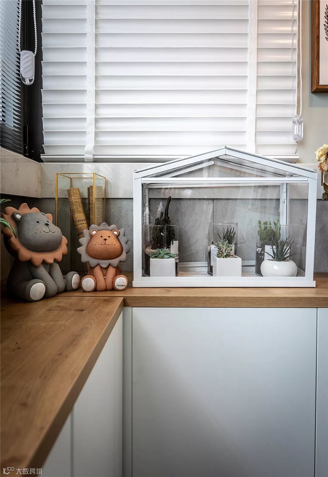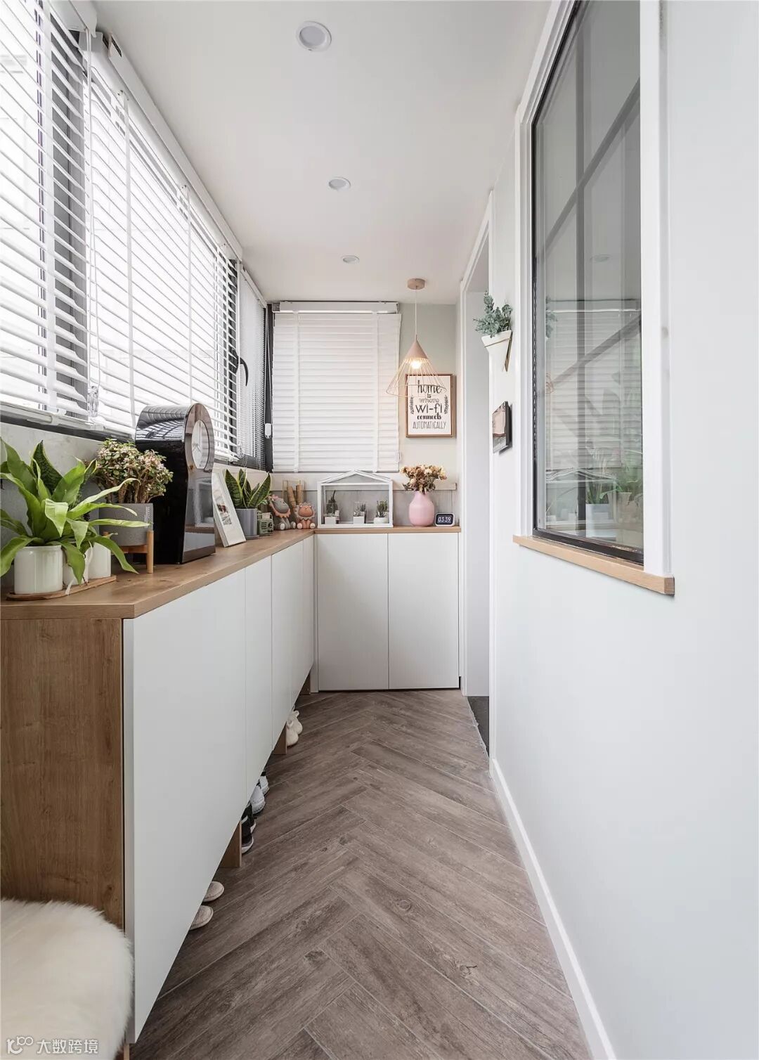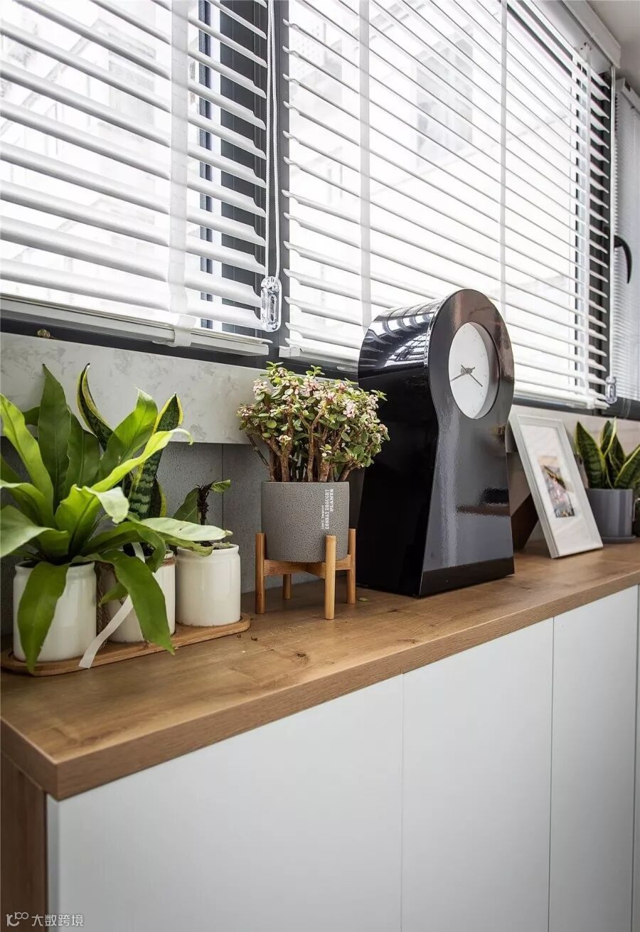 ▲ 百叶帘的大窗户给阳台引入了极好的采光,还可以根据阳光自由调节光线,窗台上精致小巧的绿植使家里显得生气蓬勃,是休憩身心的好地方。