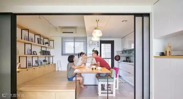 同时榻榻米能随时当作卧室来用,如果有客人要留宿、父母来探望、或者有小朋友,只要收起桌子、椅垫,拉上拉门,随时多一房可用,简直不要太好用!