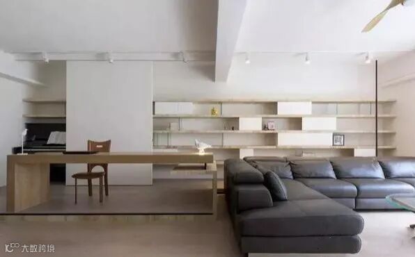 榻榻米书房多半会设计在电视墙、沙发后方,不要做隔断,直接用拉门,形成开阔的书房空间。