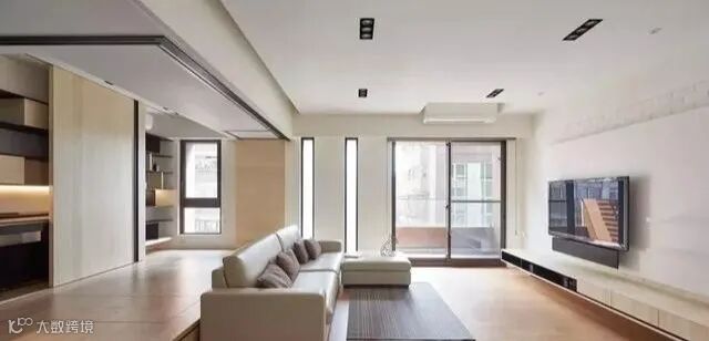 多半采用开放客厅与阳台的设计,相互串连,客厅多了一处能随时葛优躺的放松空间。