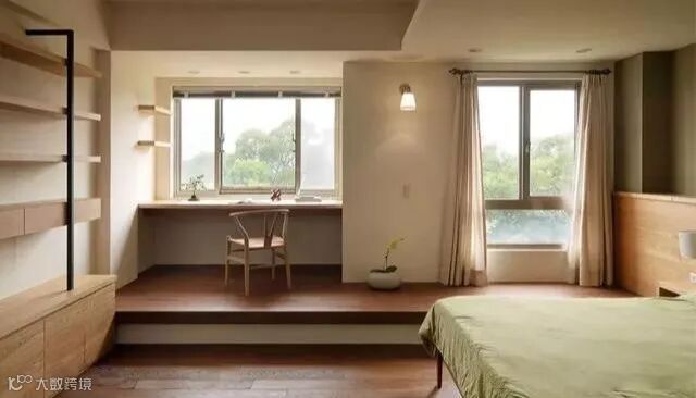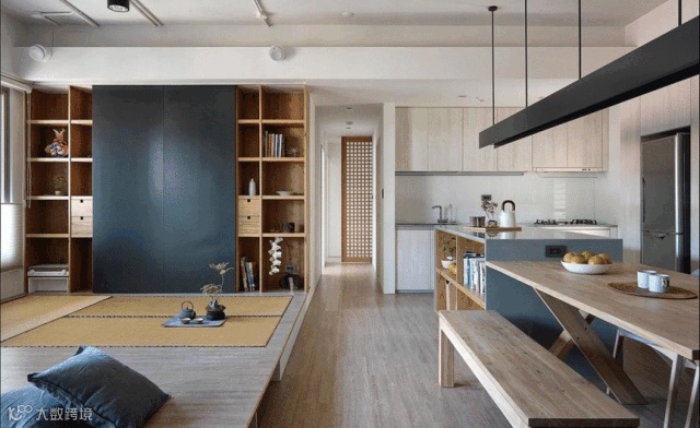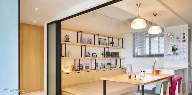 榻榻米大多设计在客厅、餐厅、书房或卧室,藉此来串联两个区域,强调空间共享的机能。