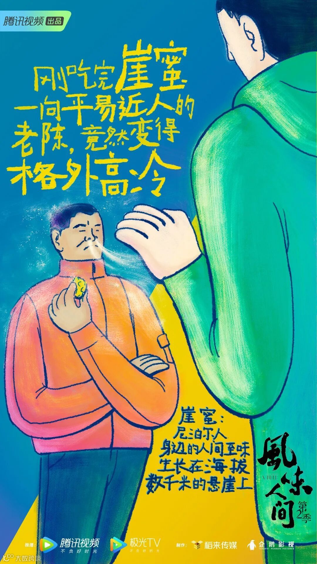 除了让人食指大动的高清「生」图海报,节目组还公布了一组插画风海报。
