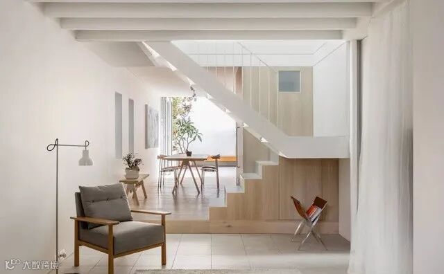 折角楼梯通常为L形或U形,这使得地面的长度和宽度的比例更合理,小公寓也适用。