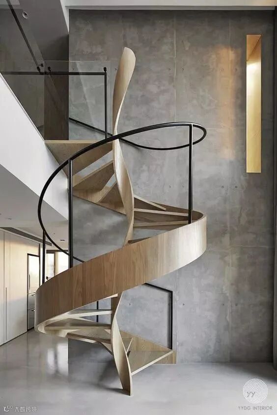 螺旋形楼梯意味着楼梯围绕主轴螺旋地分布,是当前装饰的潮流选择。