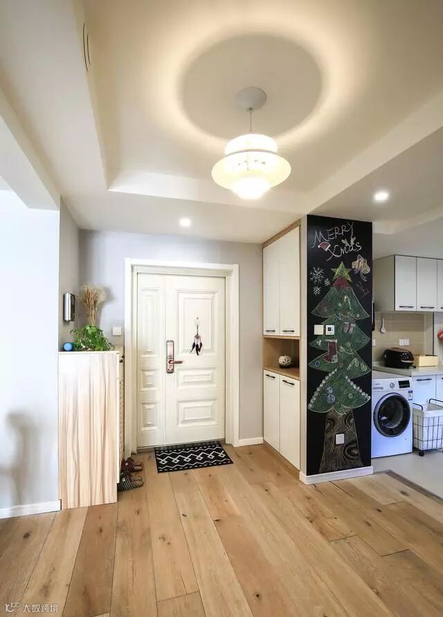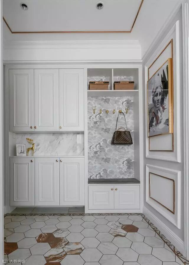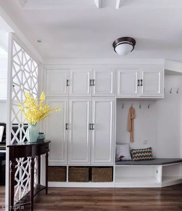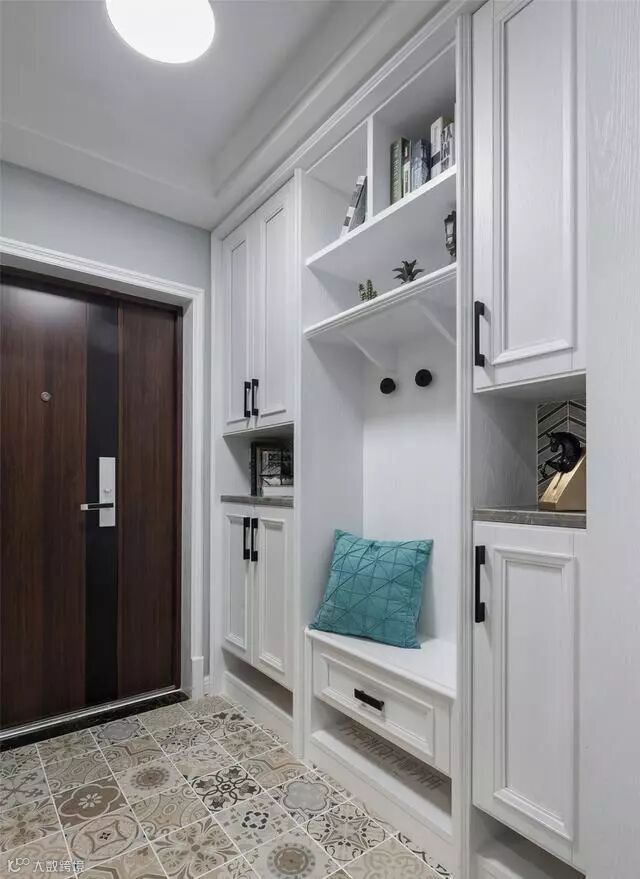 玄关空间要充分利用起来,鞋柜不要半截,建议做到顶,这样就把上方空间都利用起来了,等你真正入住,就知道家里东西多了,多点储物空间是好事。
