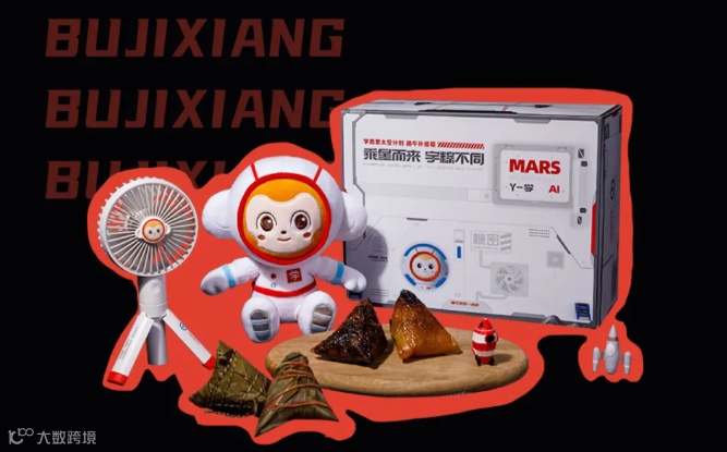 整体风格年轻、动感,主题“超级粽队“,用来致敬所有员工和用户。礼盒内多口味组合粽和星球款音乐球,据说这个音乐盒隐藏了办公地点的建筑,满满的设计感。