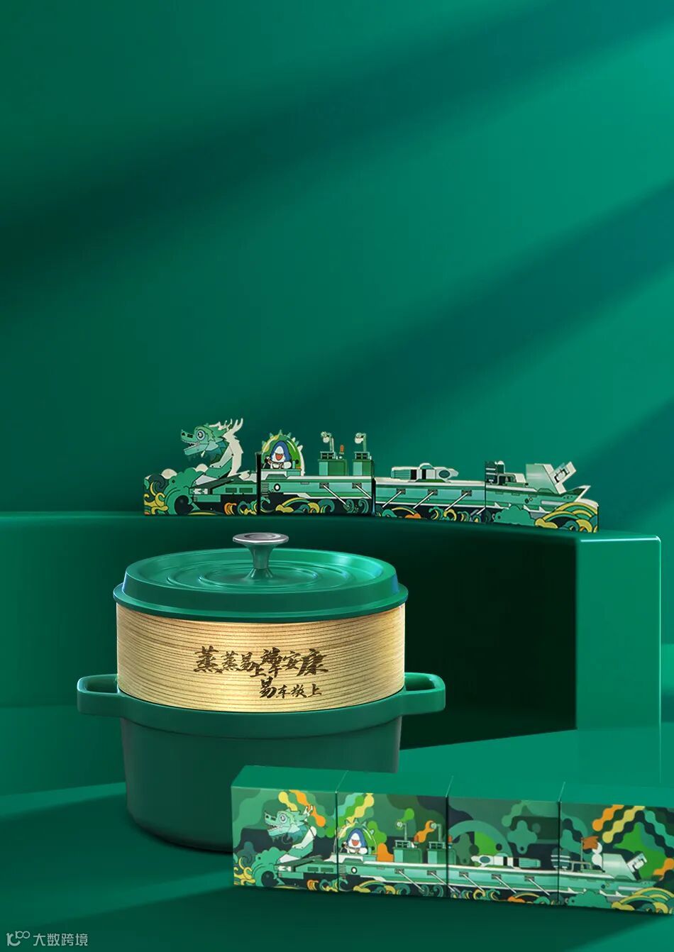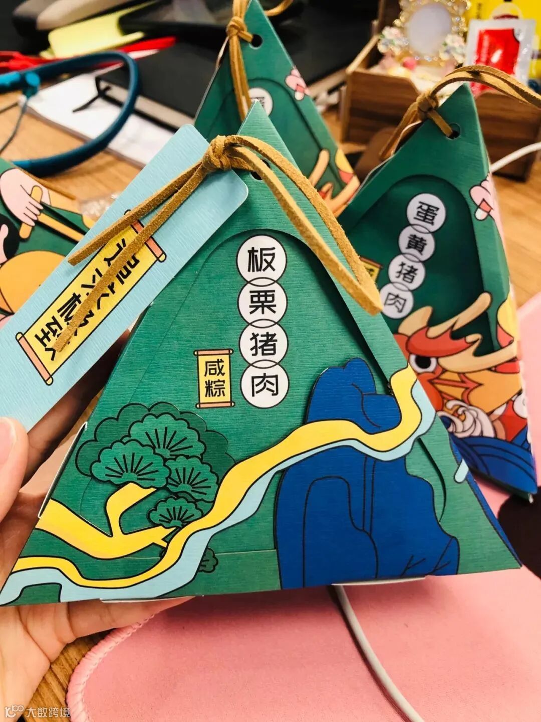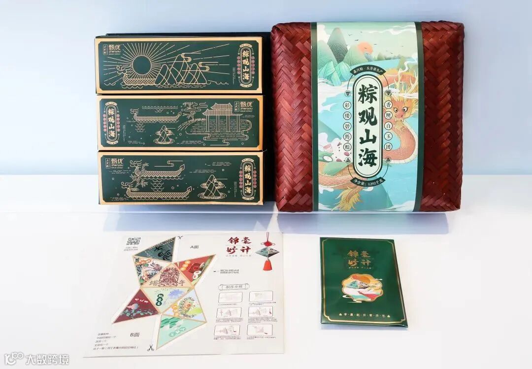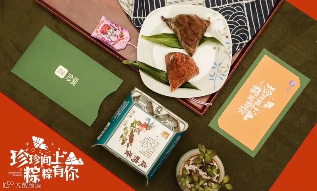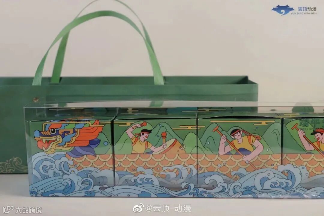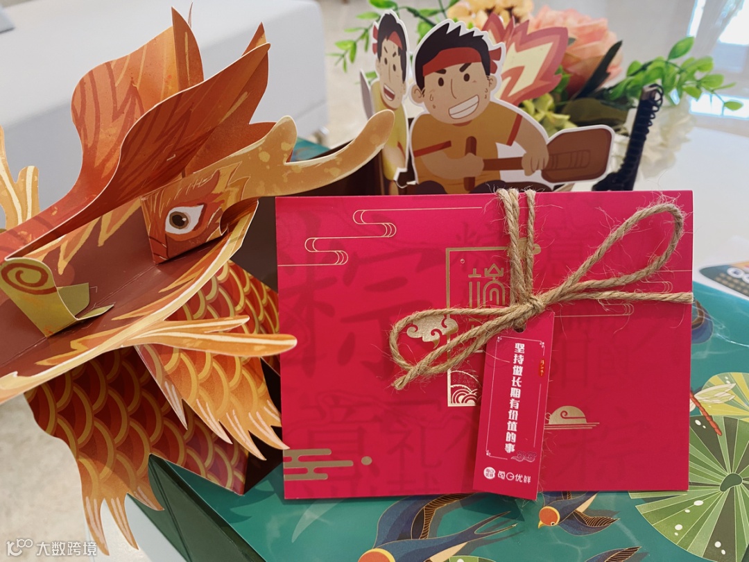 主色调就是粽子的颜色,礼盒以龙舟为灵感,附带的小旗帜上的文字也是满满字节范。中规中矩,毕竟没有周边小礼品赠送。