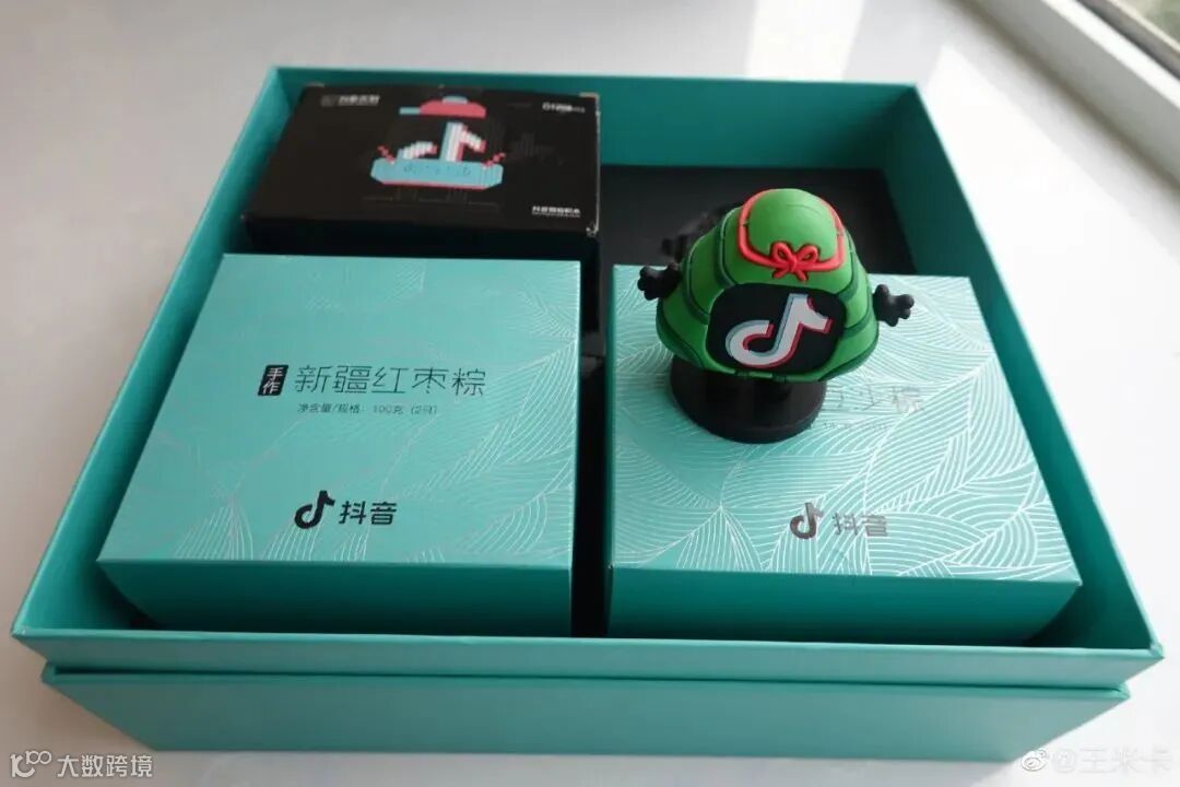 抖音自己的礼盒就比较中规中矩了,几盒粽子加上一个抖音小摆件就结束了,但据说不止这一个版本,看到其他版本的同学可以后台发给Canva酱看看。