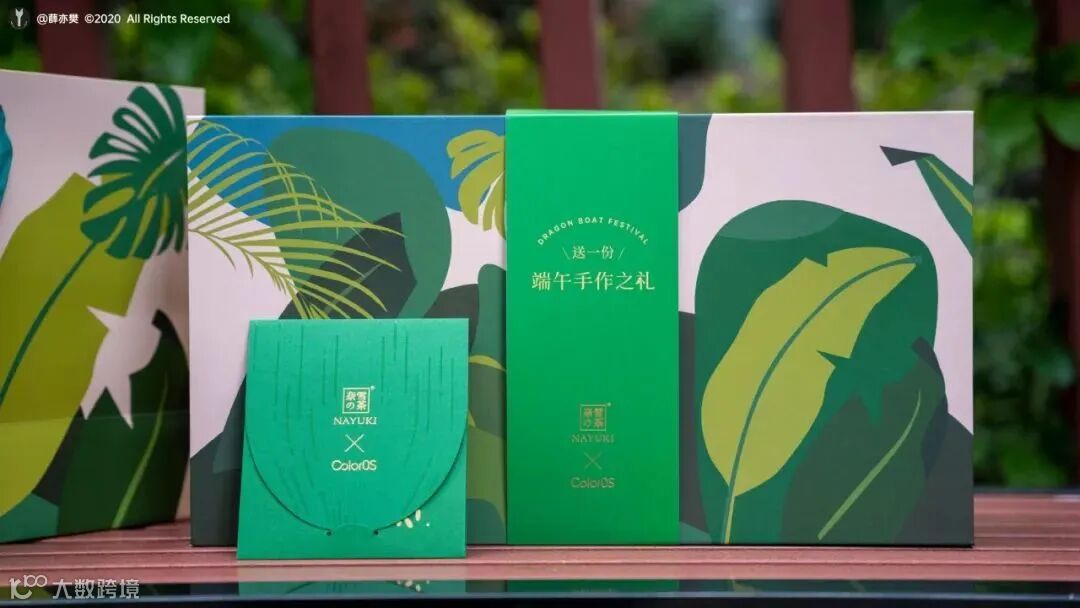 oppo的端午礼盒,看起来像一个热带植物园,以植物为主题,生机十足。
