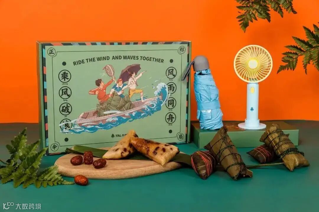 好未来今年的主题为“乘风破浪、风雨同舟”,礼盒内含定制风扇、专属雨伞。
