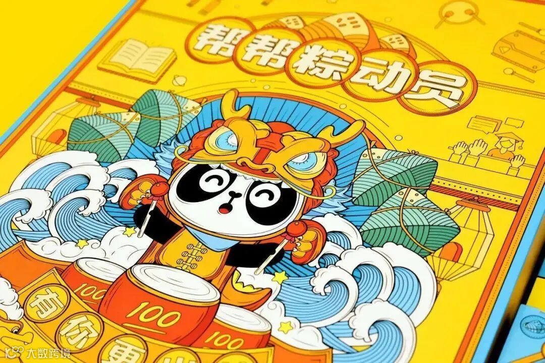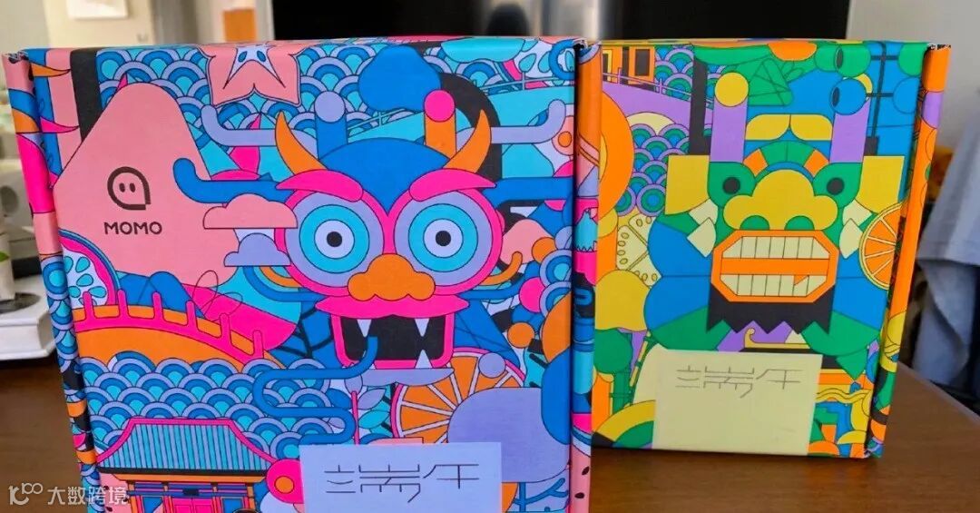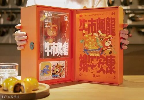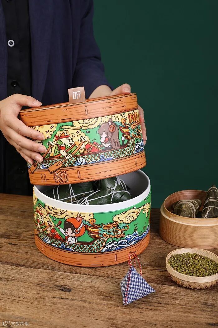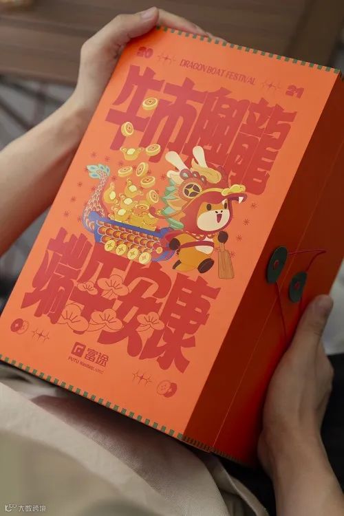 三七互娱的礼盒色彩很足,图案装饰也比较丰富,主题为“同心同粽”。