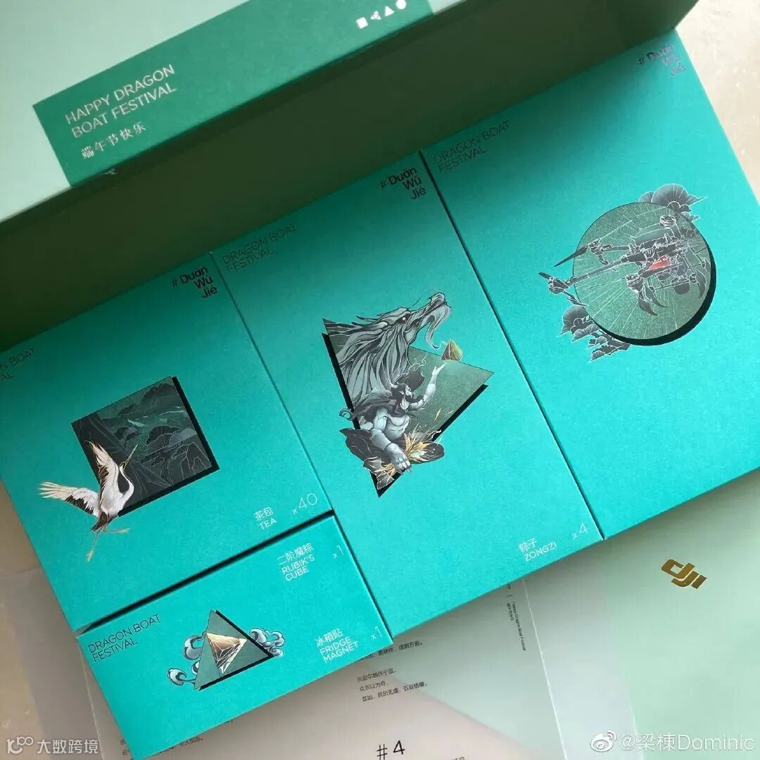 大疆的这个蓝色,很多女生应该很喜欢~除了粽子,里面还附赠了茶包、冰箱贴,最让人惊喜的是可携带小风扇,炎热夏天必备单品!真贴心。