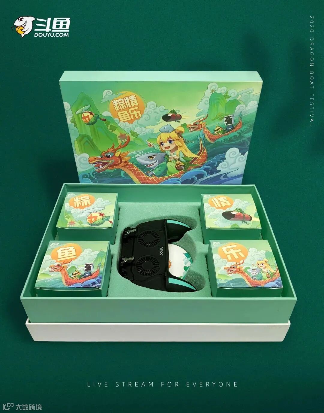 看到这里,斗鱼的礼盒是我最想要的了,那个游戏手柄形状的吃鸡神器,深得游戏爱好者的心,粽子吃完,时尚感十足的PVC手提袋还能化身出街利器。