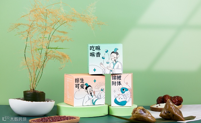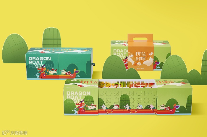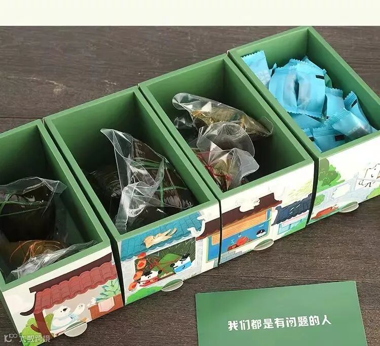 又是一家可爱的端午礼盒,值得一提的就是这几个盒子摆放开,又是一幅完整的画面,可爱的心机小设计。