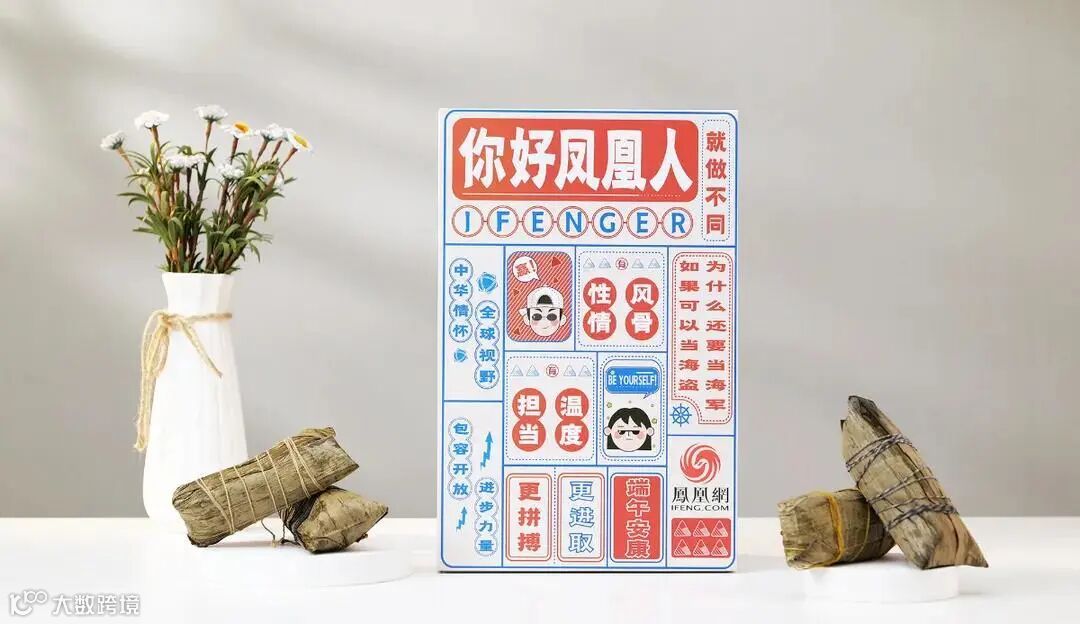 恰逢凤凰卫视开播25周年,其端午礼盒走的是怀旧复古风,主题为“你好凤凰人”。内含长粽、折扇,包装上也都写满了凤凰人的精神、祝福以及期盼。