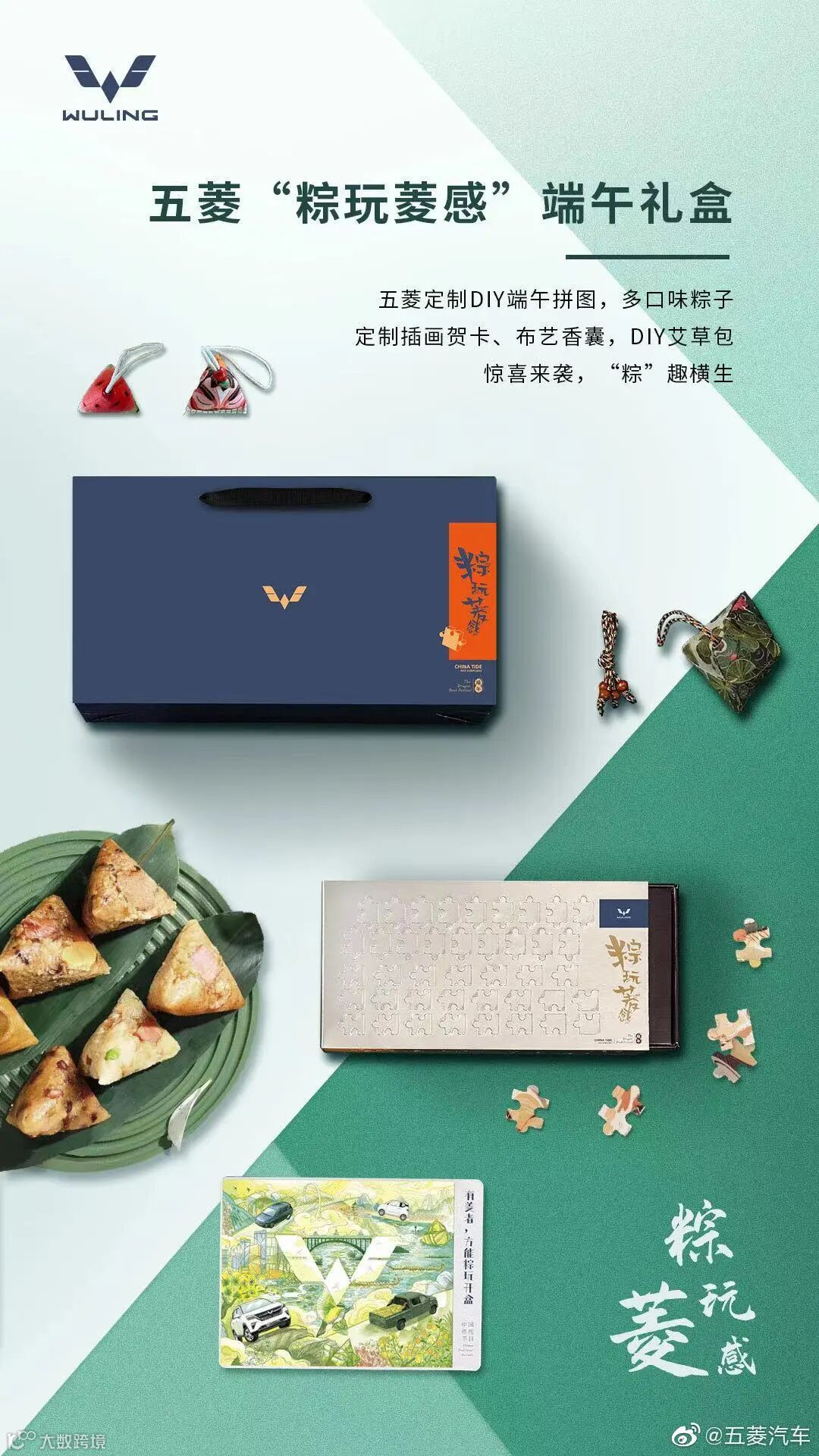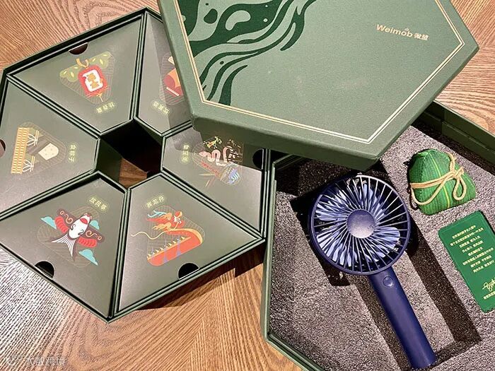 vivo的端午礼盒具有两款,第一款在拍摄上确实下功夫了,形式感十足,美感与实用兼具,里面搭配了一个高颜值的饭盒;第二款在包装创意上做足了功课。