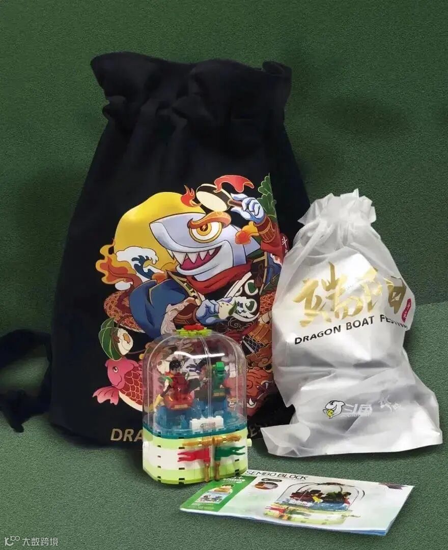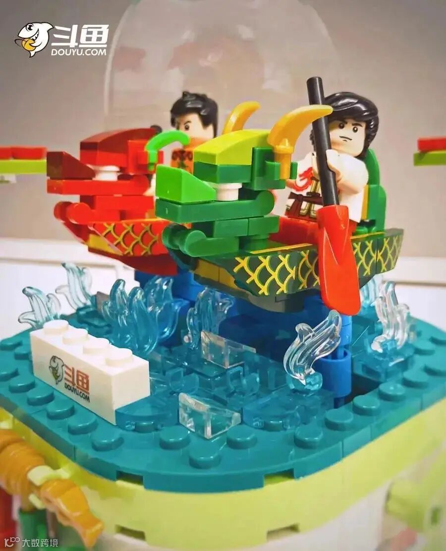 斗鱼的端午节礼盒很像一个鱼篓,简单有新意,里面也有一个龙舟积木。