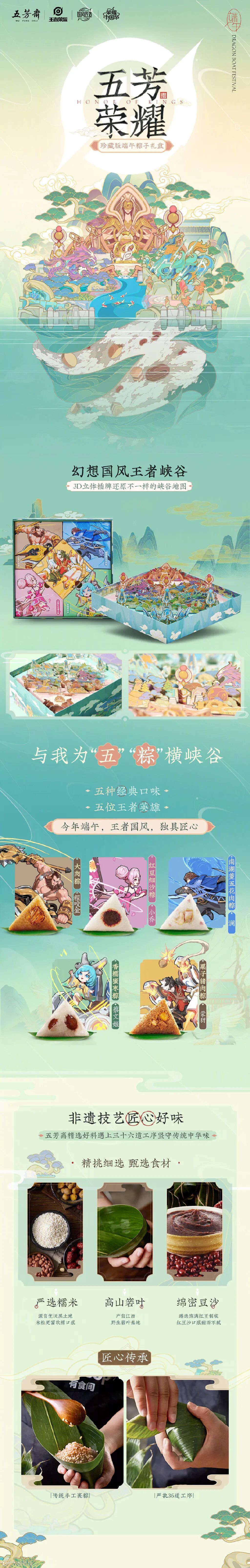 三七互娱的端午礼盒除了粽子以外,还有一代粽师盲盒,通过不同的形象讲述着企业价值观,创新、进取、分享、尊重。