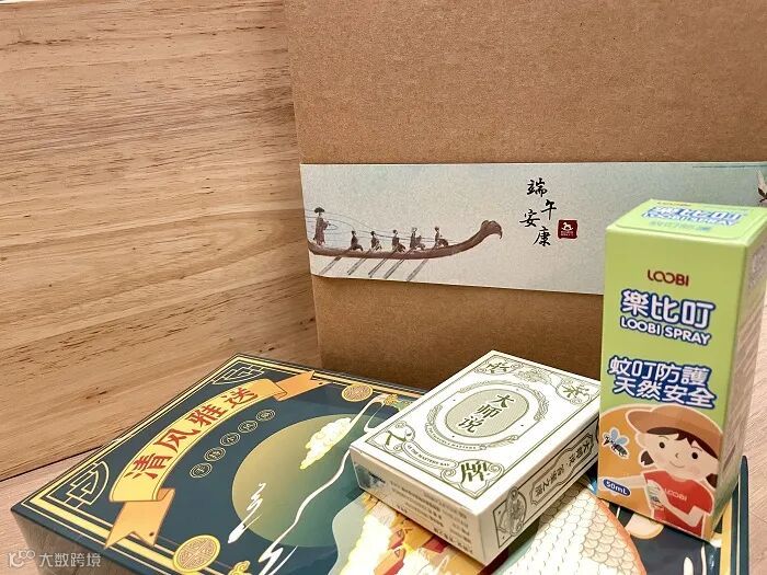 赤马广告端午礼盒设计素雅,盒内有手持小风扇、防蚊喷雾,最惹眼的就是带着神秘的答案之牌。