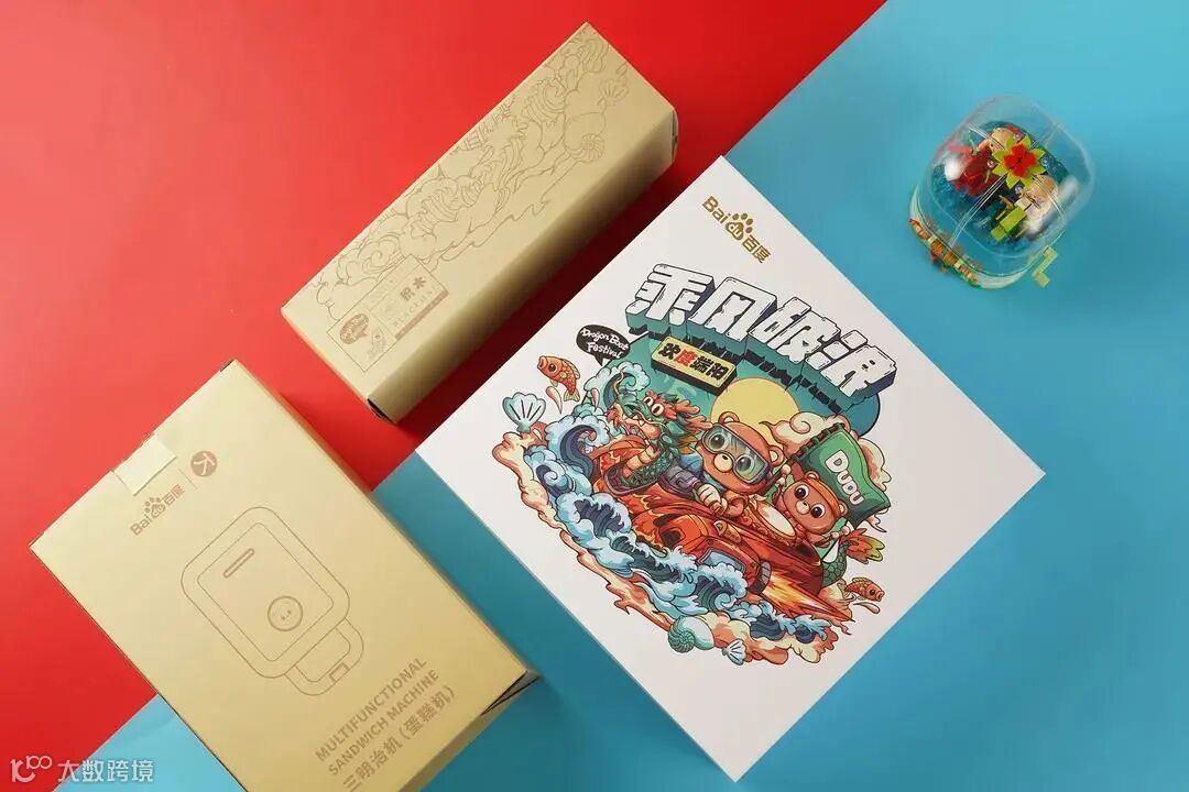 今年百度的端午节礼盒主题为“乘风破浪,欢度端阳”,礼盒外包装上也融入了节日元素——赛龙舟。盒内礼物揽括了吃、穿、玩等方方面面。由小度熊驾驶的定制龙舟积木,透露着设计者的巧思;双色三明治机,治愈每一个早晨;而特殊材质的包包,瞬间时尚感拉满。