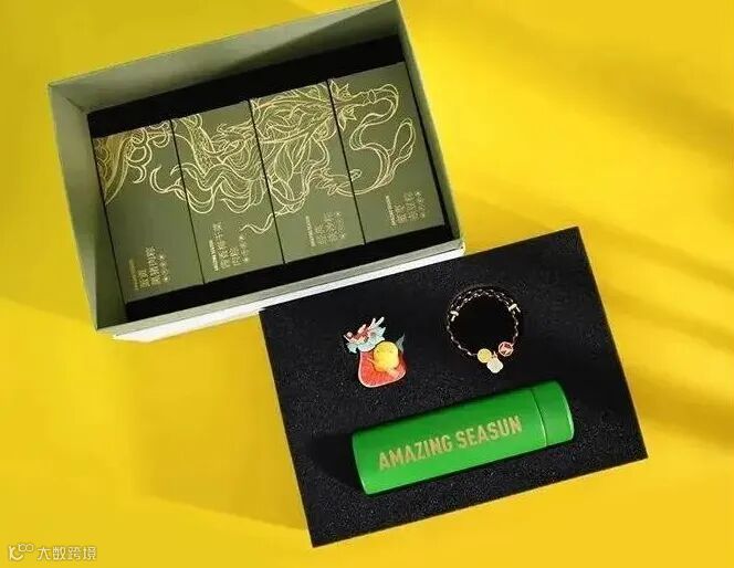 打开礼盒是一个国粹风格的立体插画,视觉冲击力很强,还送了水杯、加湿器、香囊等周边。
