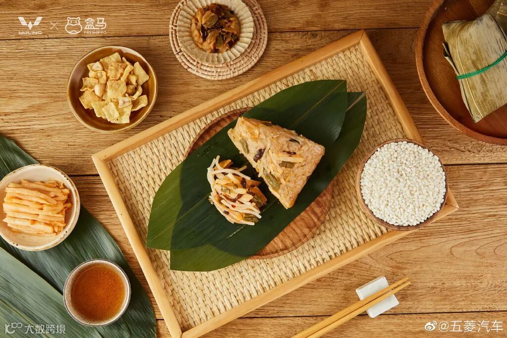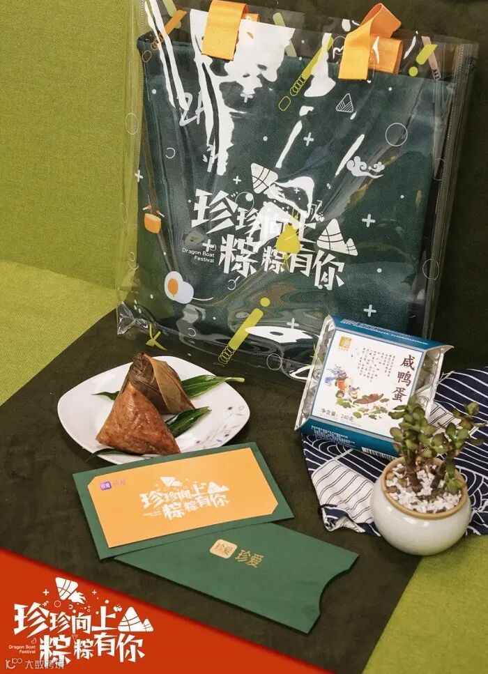 主题“融在一起”,整体风格清新淡雅,除了粽子,还附赠了饭盒和饭包,对喜欢带饭去公司的小伙伴非常友好~