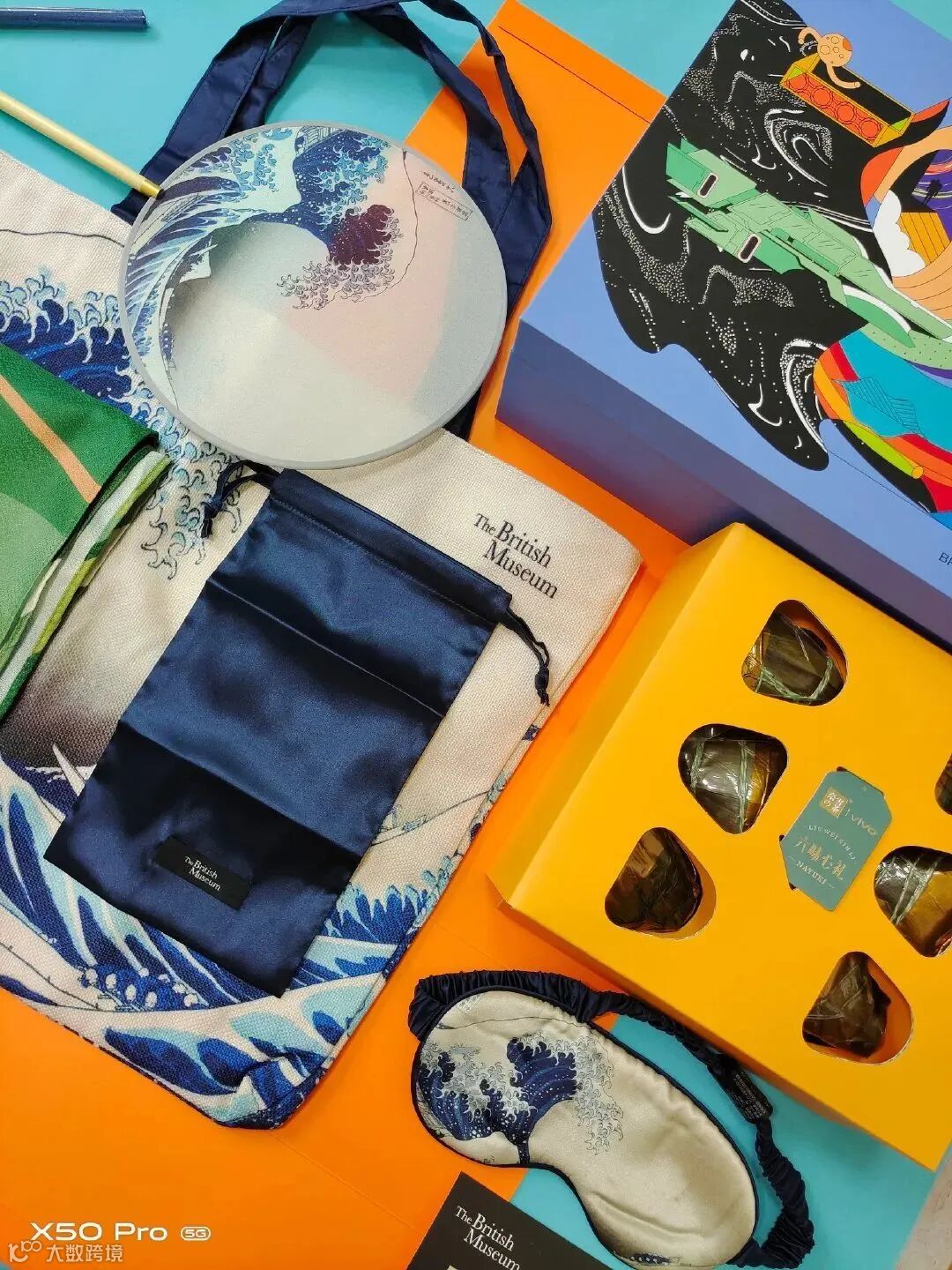 除了奈雪的粽子外,里面附赠了大英博物馆神奈川冲浪周边:帆布包、眼罩,扇子等。