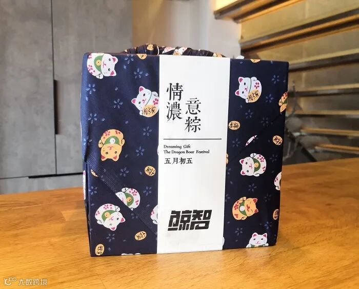 今年很多品牌都选择了深蓝色作为礼盒的主基色,携程也不例外。“粽情启程”是携程今年的主题,礼盒里除了粽子,还有纪念徽章。