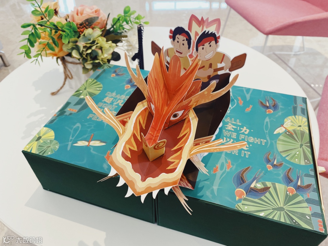巨人网络的端午节礼盒是一个龙舟造型的粽子礼盒,里面包括纸浆船、香囊、手提盒。今年是巨人网络30周年,因此在给员工的这份礼盒中,除了充满创意的设计之外,也让人感受到了巨人文化中温暖的一面。