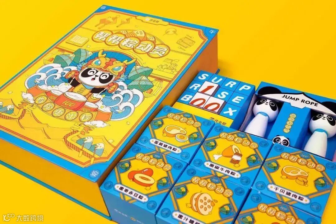 作业帮端午礼盒主题是“帮帮粽动员”,礼盒中不但有粽子,还有定制跳绳,以及一组盲盒。相信盲盒爱好者会很喜欢~