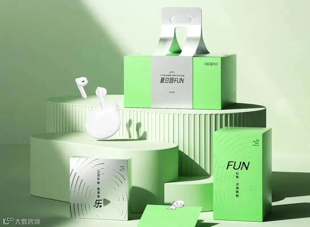 OPPO的端午礼盒主题为“夏日回FUN」”,盒身小巧,以绿色色调为主,清新感扑面而来。