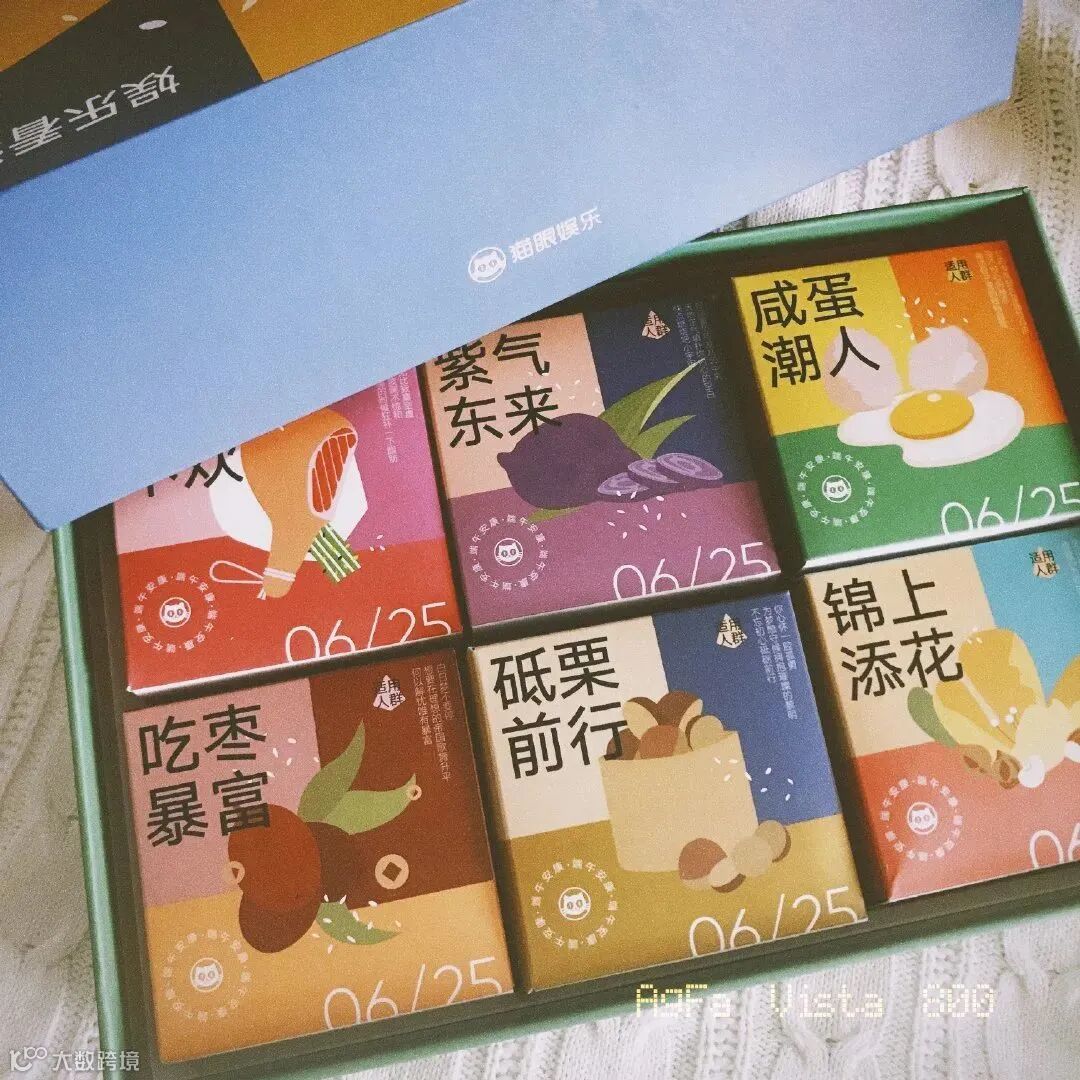 猫眼电影的端午礼盒,主题是“粽享喵趣“,整体色彩也很鲜艳活泼,每个粽子的小外盒都是有心机设计的,咸蛋超人、紫气东来…用这些代表了粽子的口味,很有创意啦~