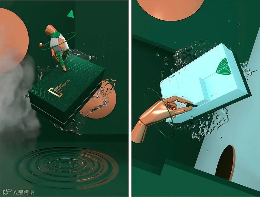 巨量引擎依旧走高端风,包装以深绿和金色相搭配,四四方方的手提袋和包装盒,大气有品味。
