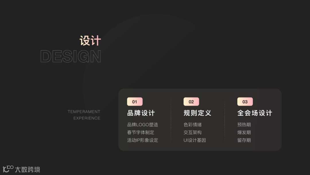1,品牌设计;2,规则定义;3,全会场设计。