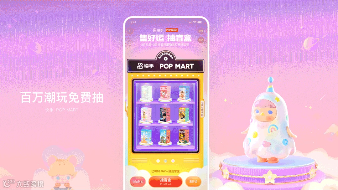 设计上采用跟线下场景一致的“抽盲盒机”作为主视觉,结合着动效音效,使会场氛围更加热闹趣味。