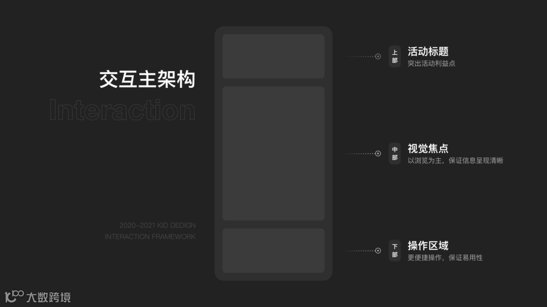 “顶部”活动标题,突出活动利益点;“中部”视觉焦点,以浏览为主,保证信息呈现清晰;“底部”为操作区,更易操作。