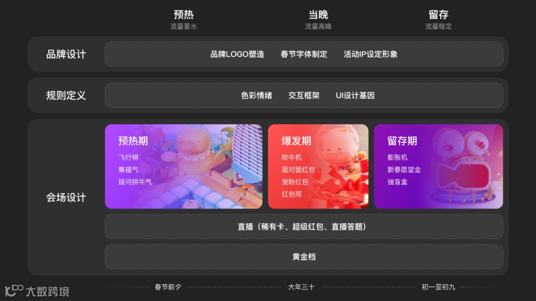 以上,就是以设计视角针对2021年快手春节项目从品牌视觉设计,到定义全局规则,再到全会场的体验设计(预热期、爆发期、留存期)的回顾和总结。