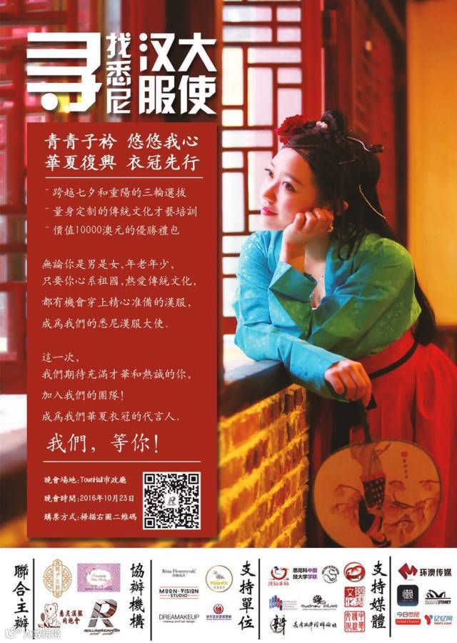 青青子衿 悠悠我心华夏复兴 衣冠先行无论你是男是女,您老年少,只要你心系祖国,热爱传统文化,都有机会穿上精美的汉服,成文我们的悉尼汉服大使!