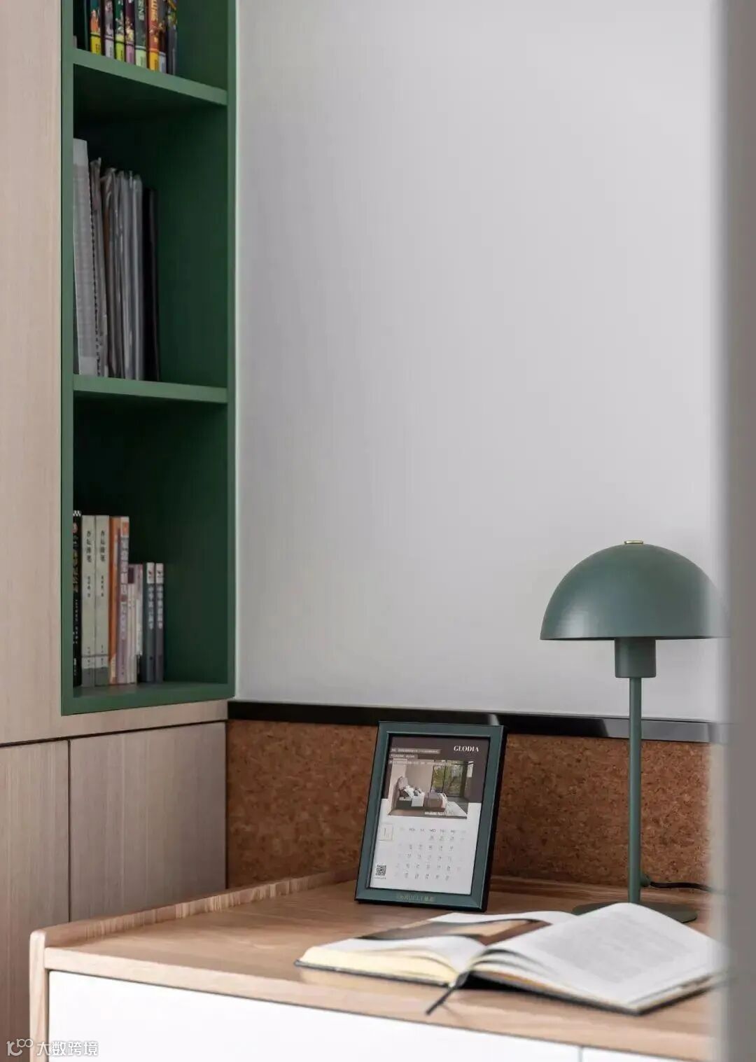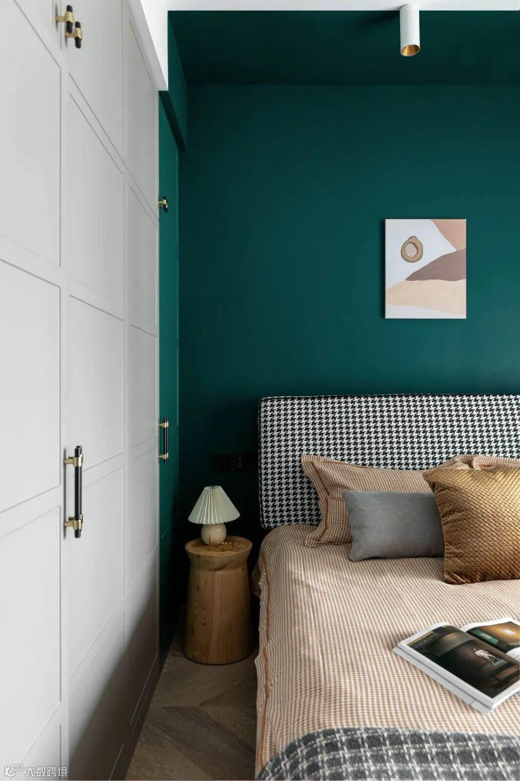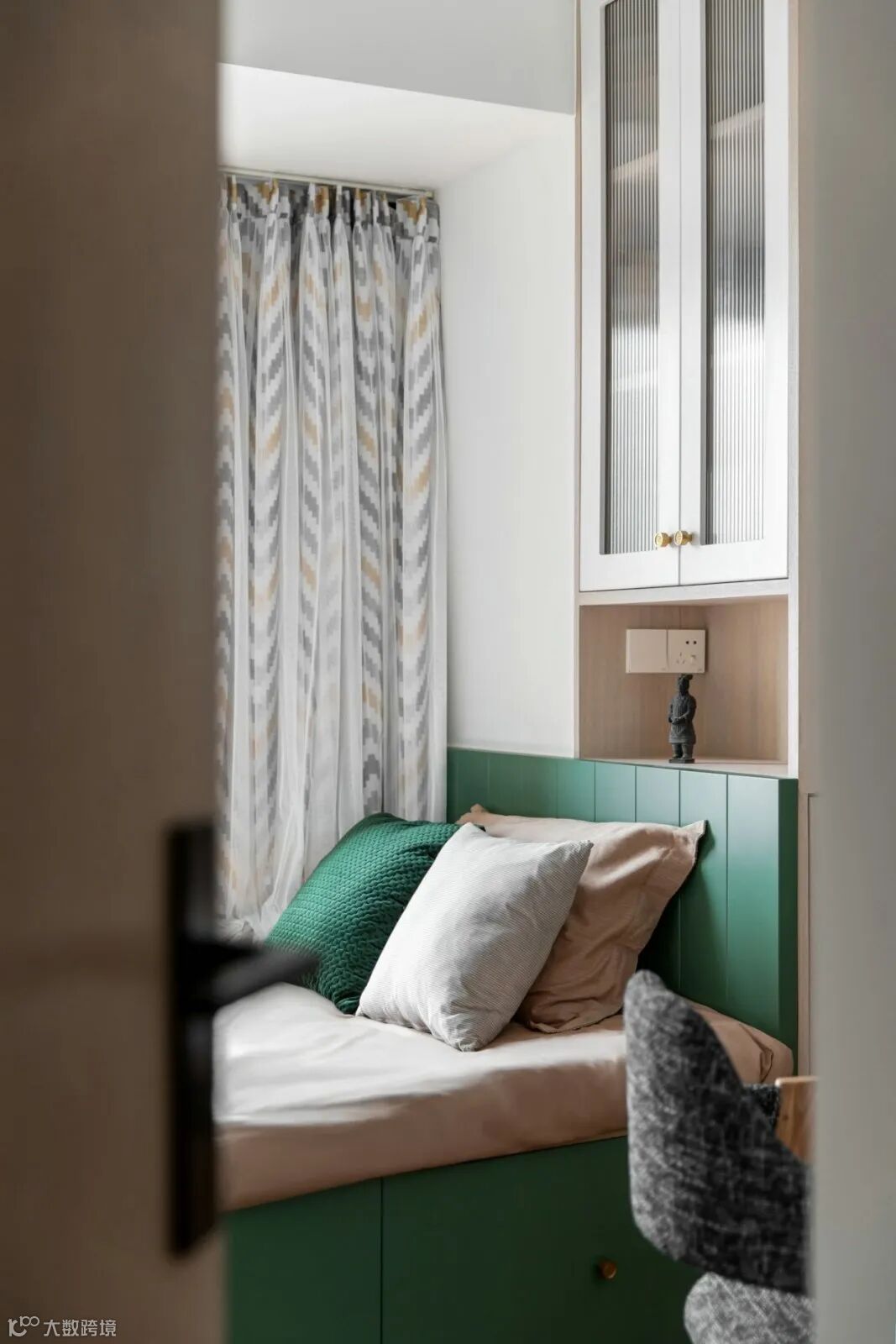 绿色从床背景蔓延至顶面、柜面