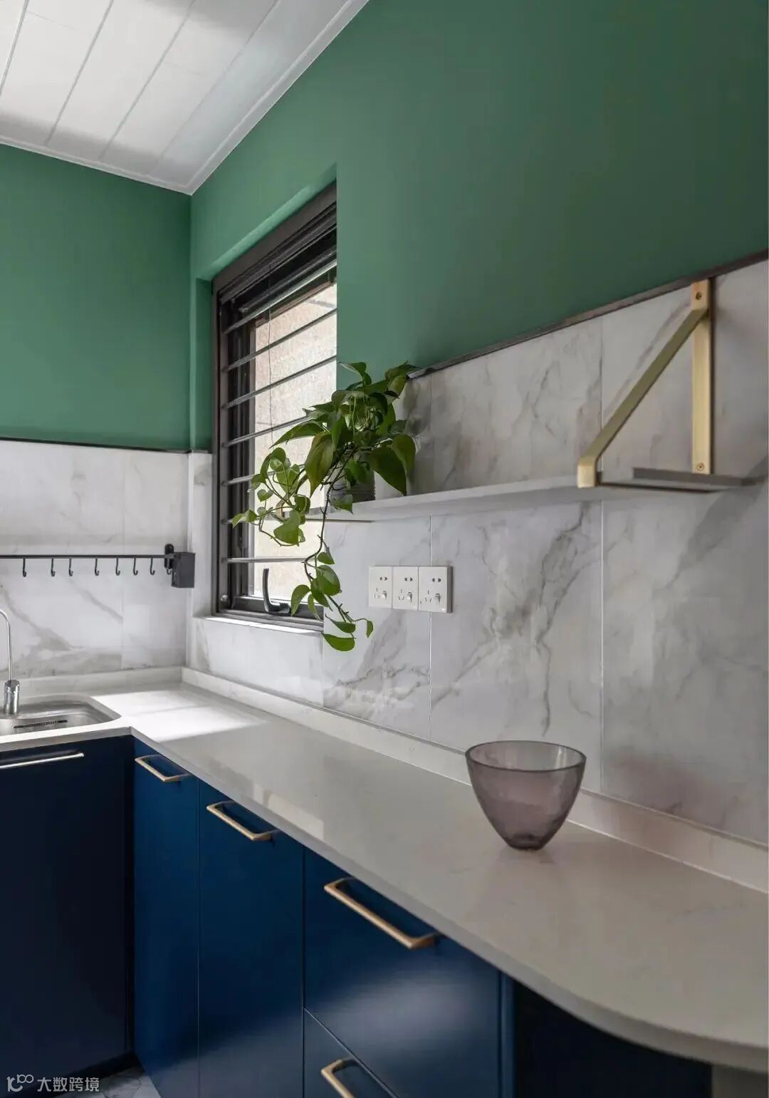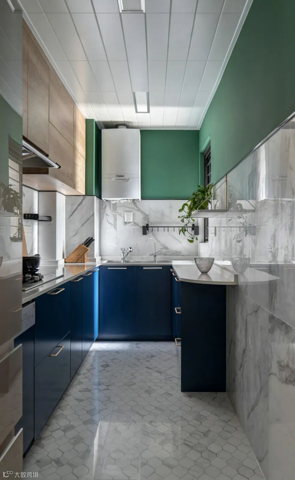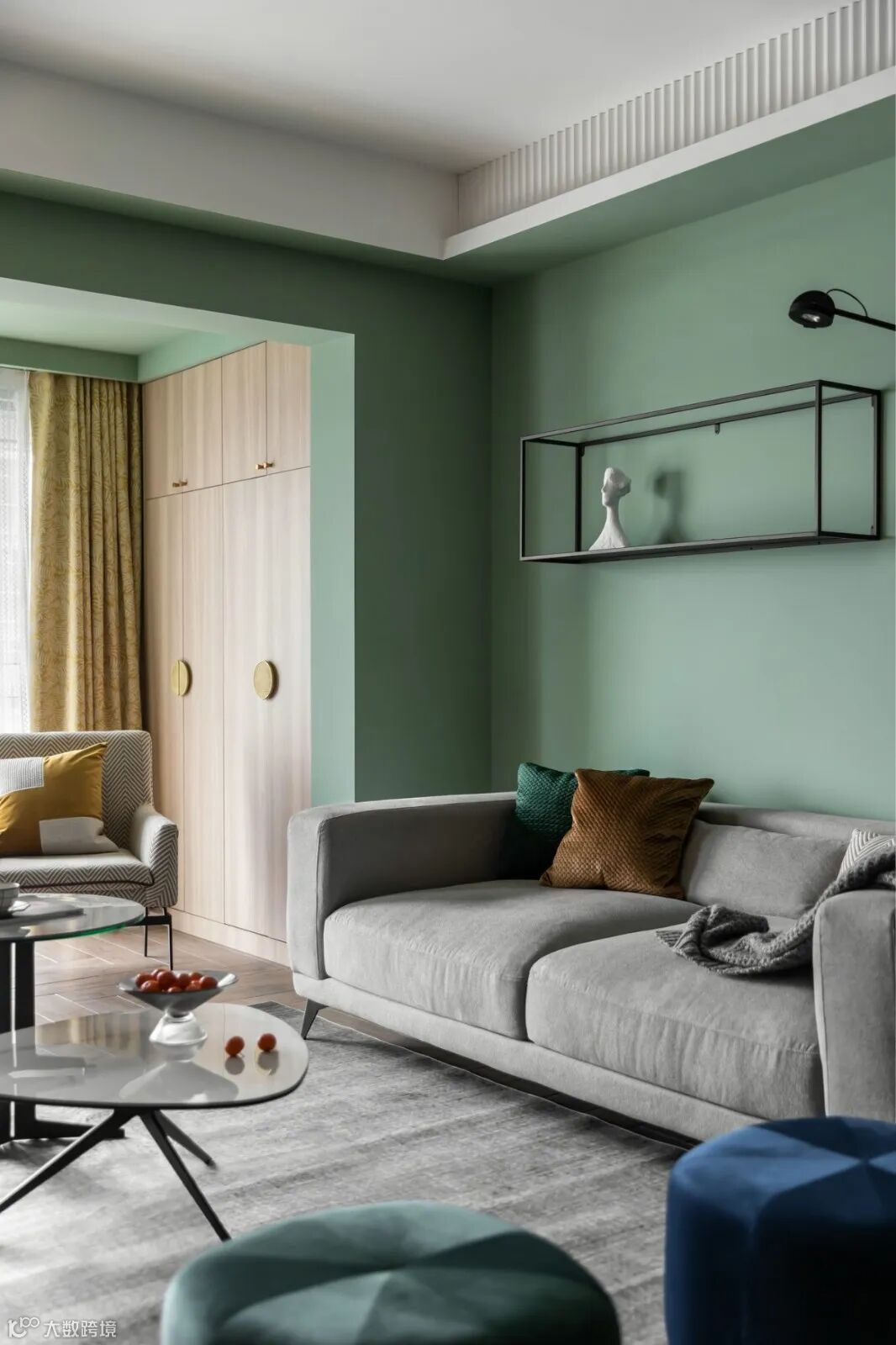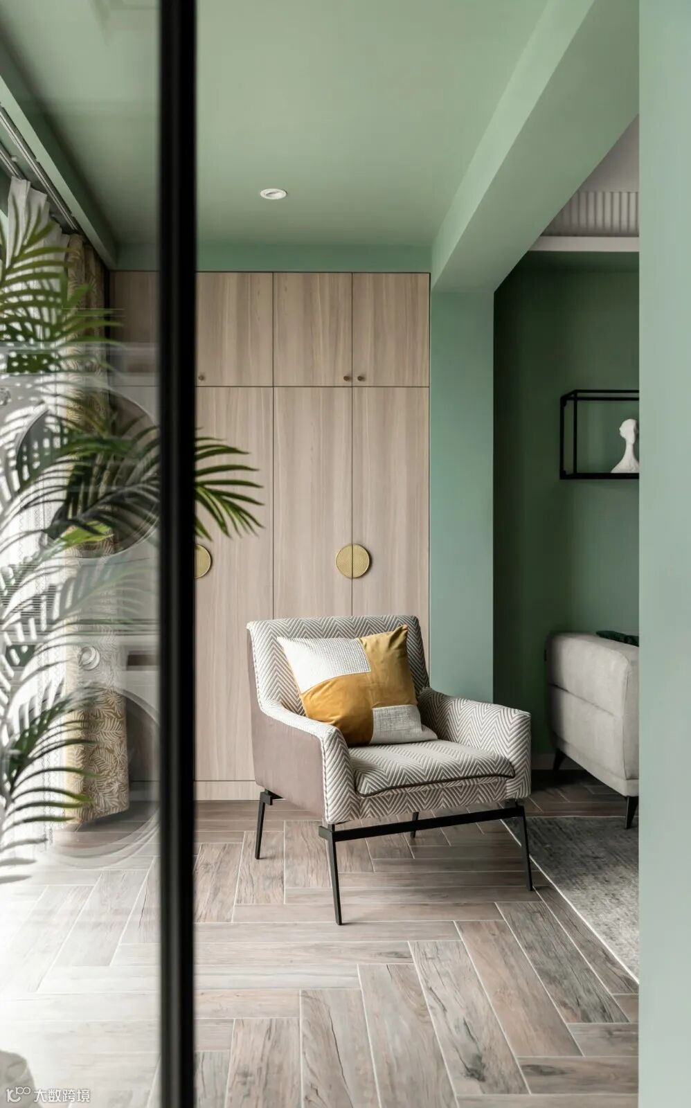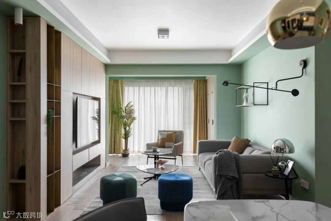 明亮的基调,腰线一抹绿色呼应整体空间