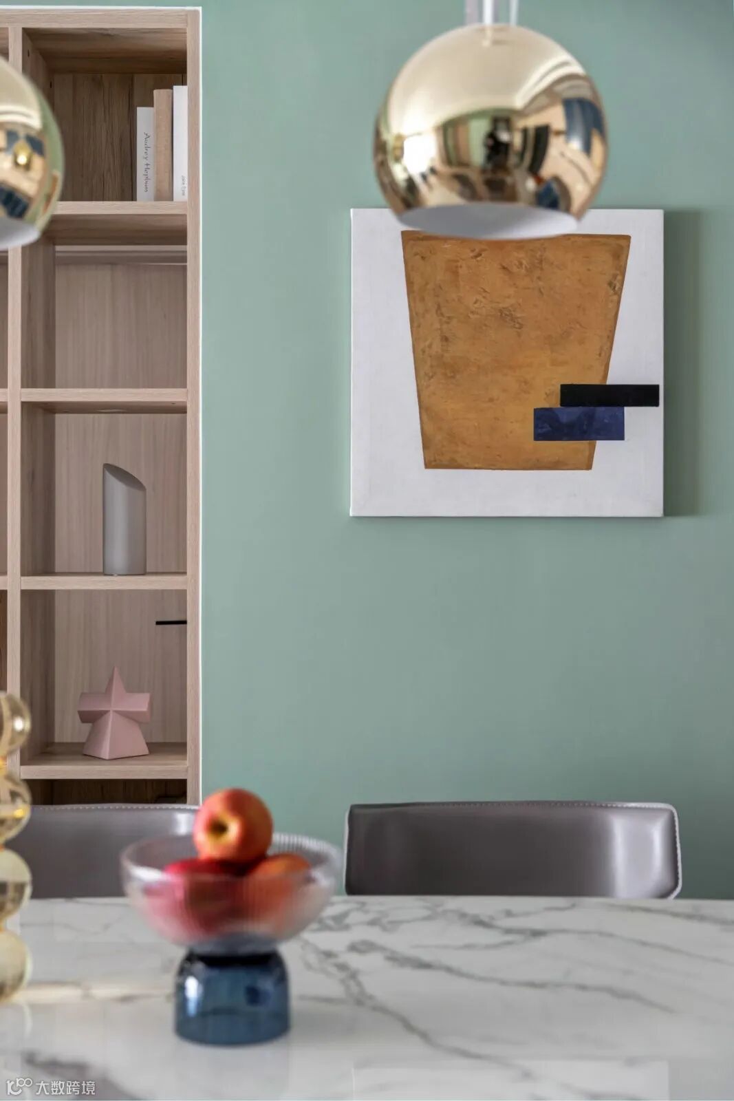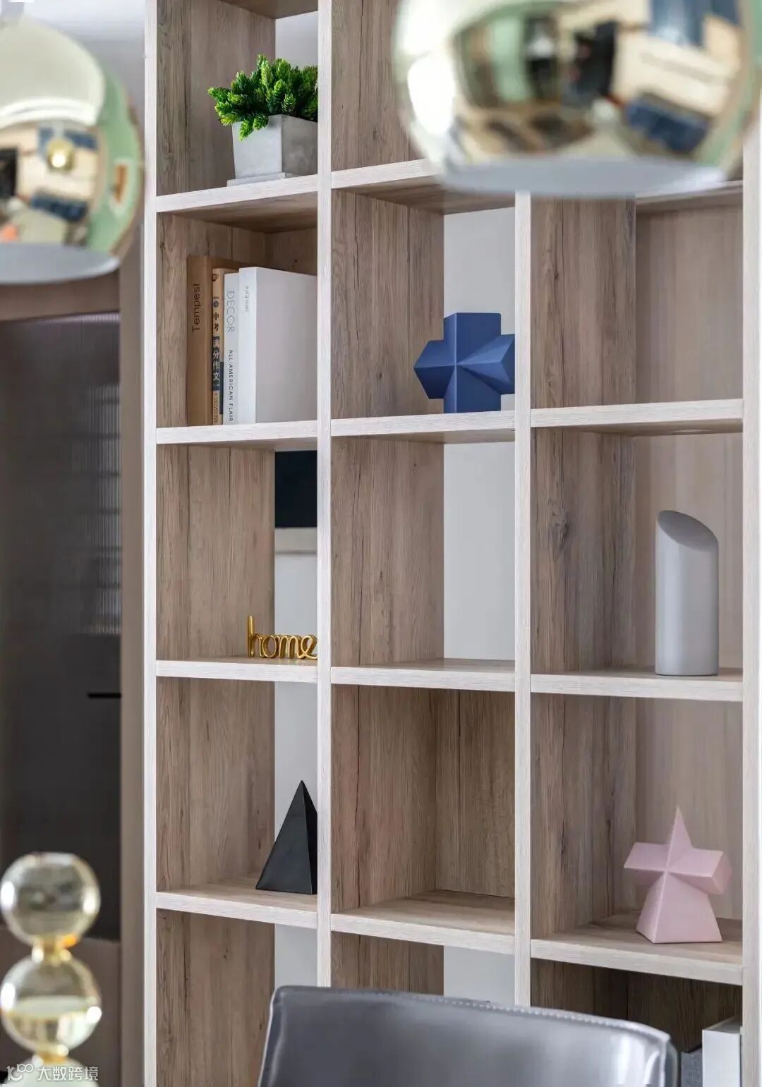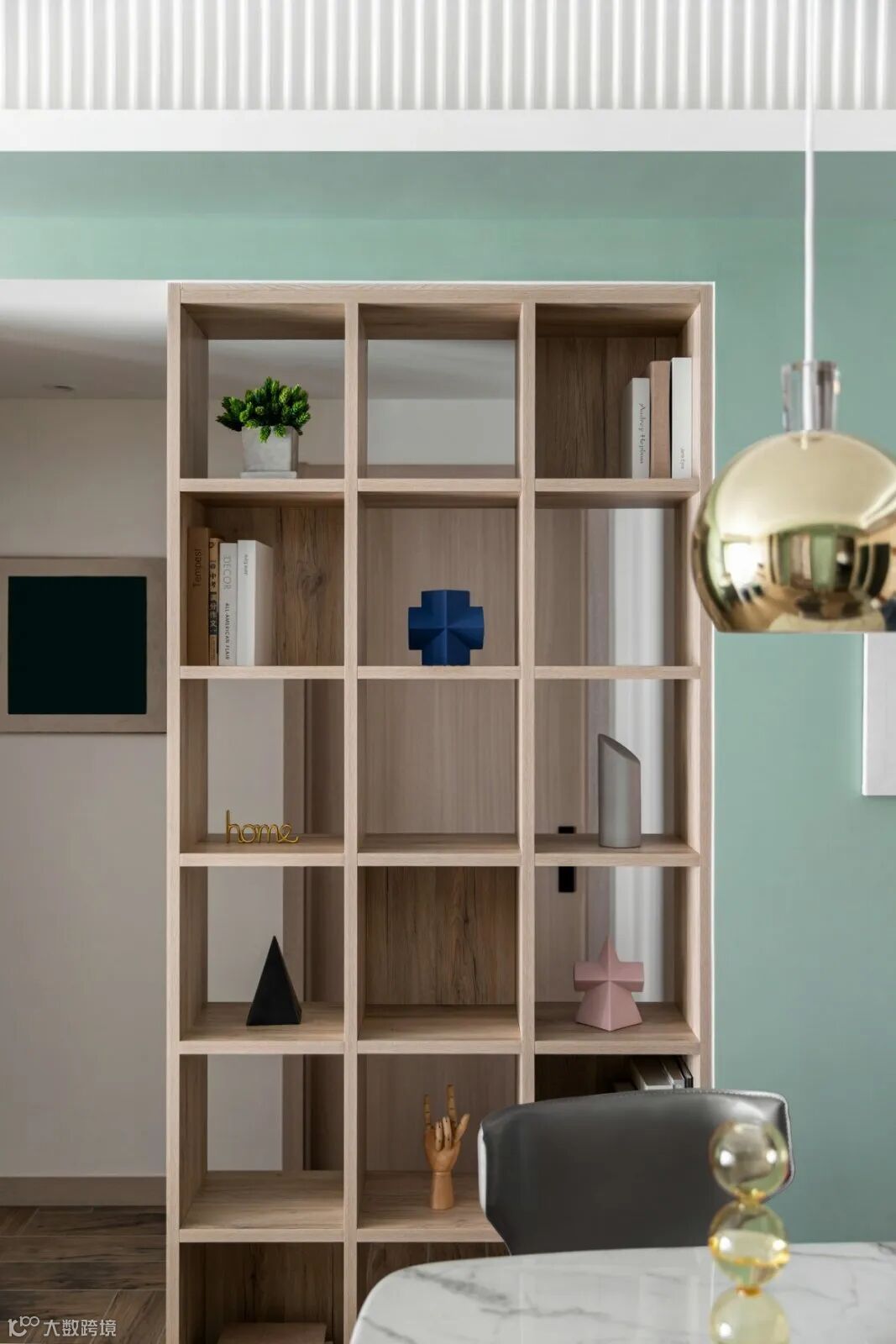 餐厅与内过道之间,半通透的展示书架