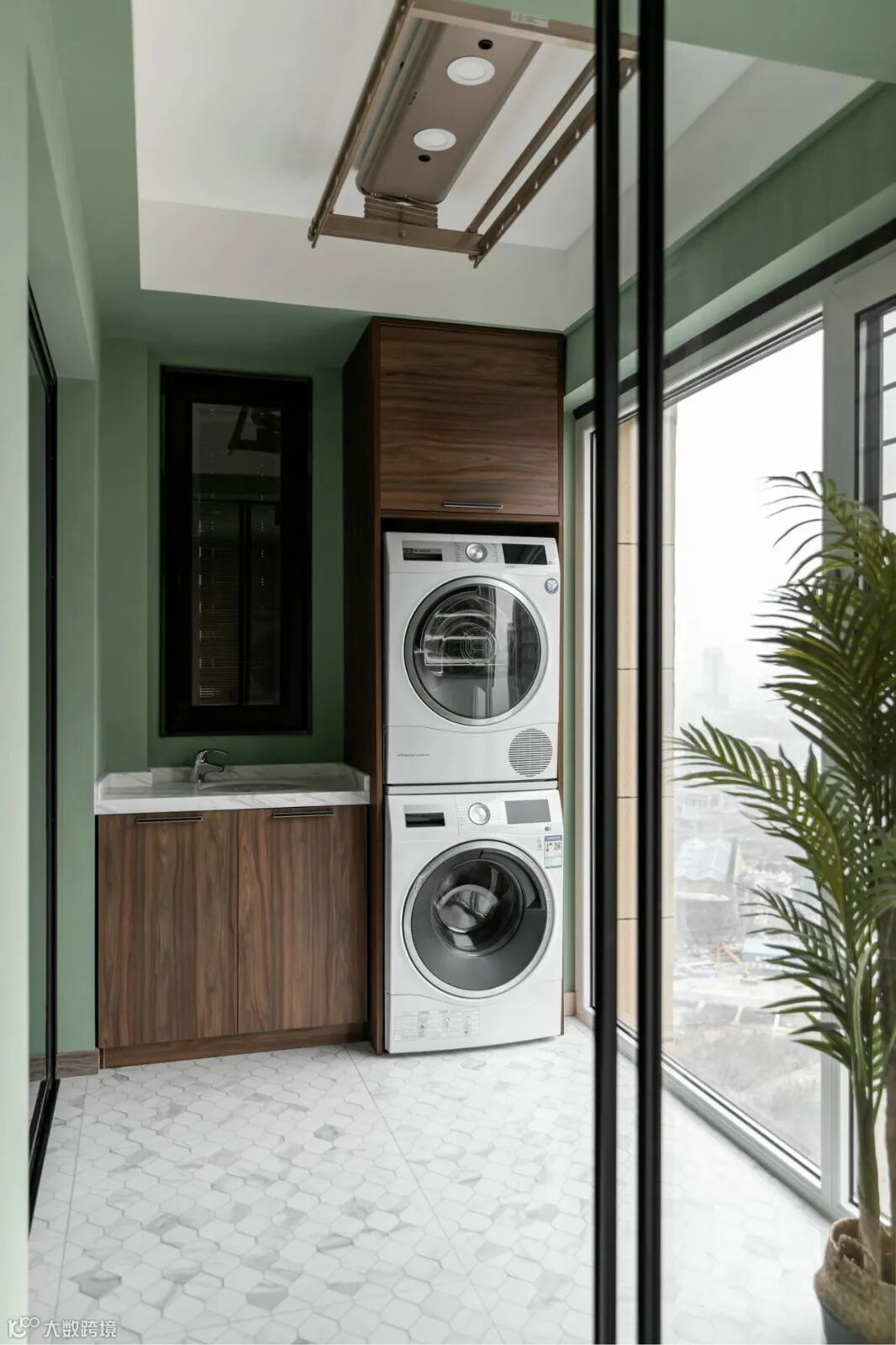 休闲阳台与生活阳台,通过玻璃门分开