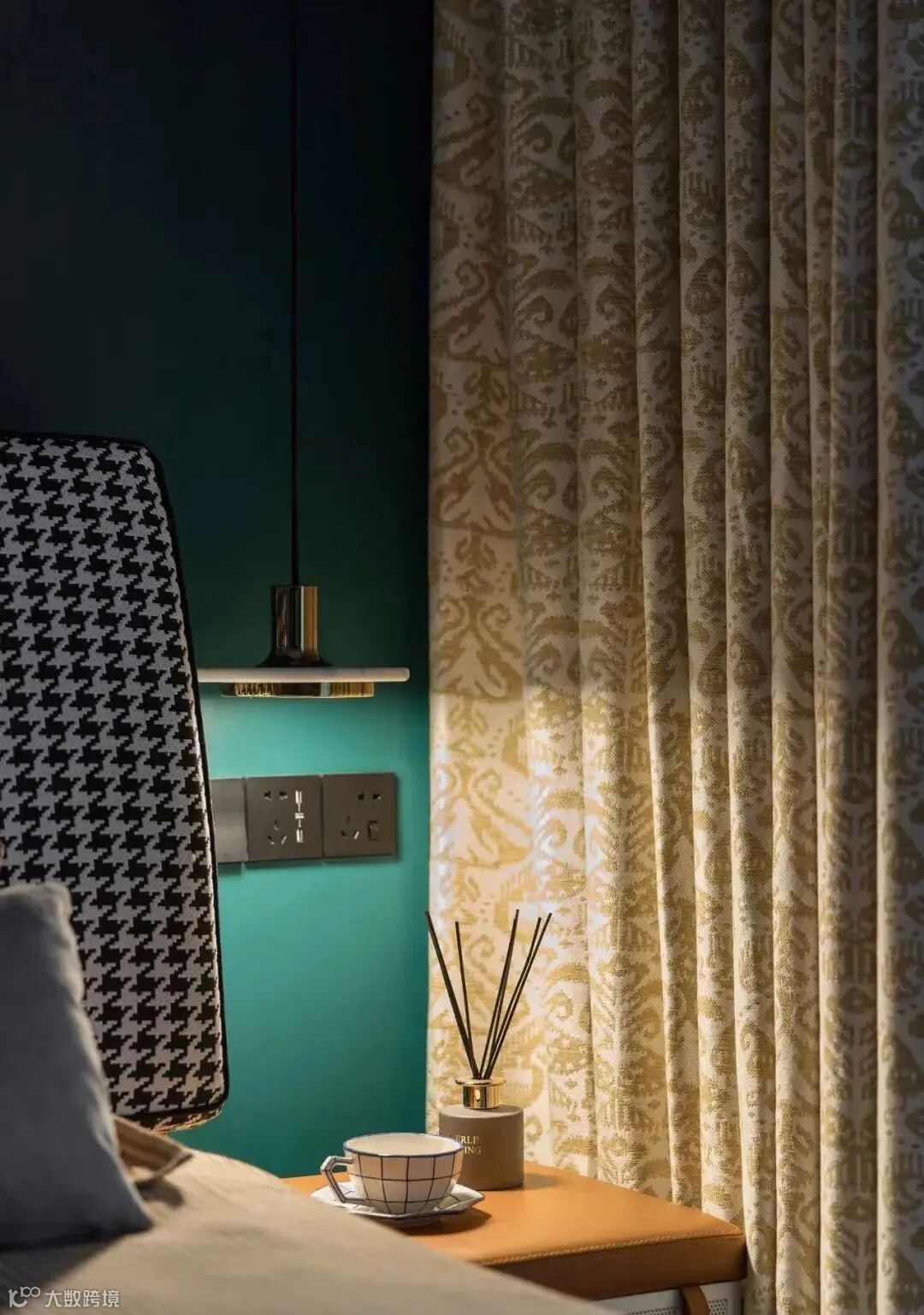 另一侧床头,吊灯垂下,不一样的光感