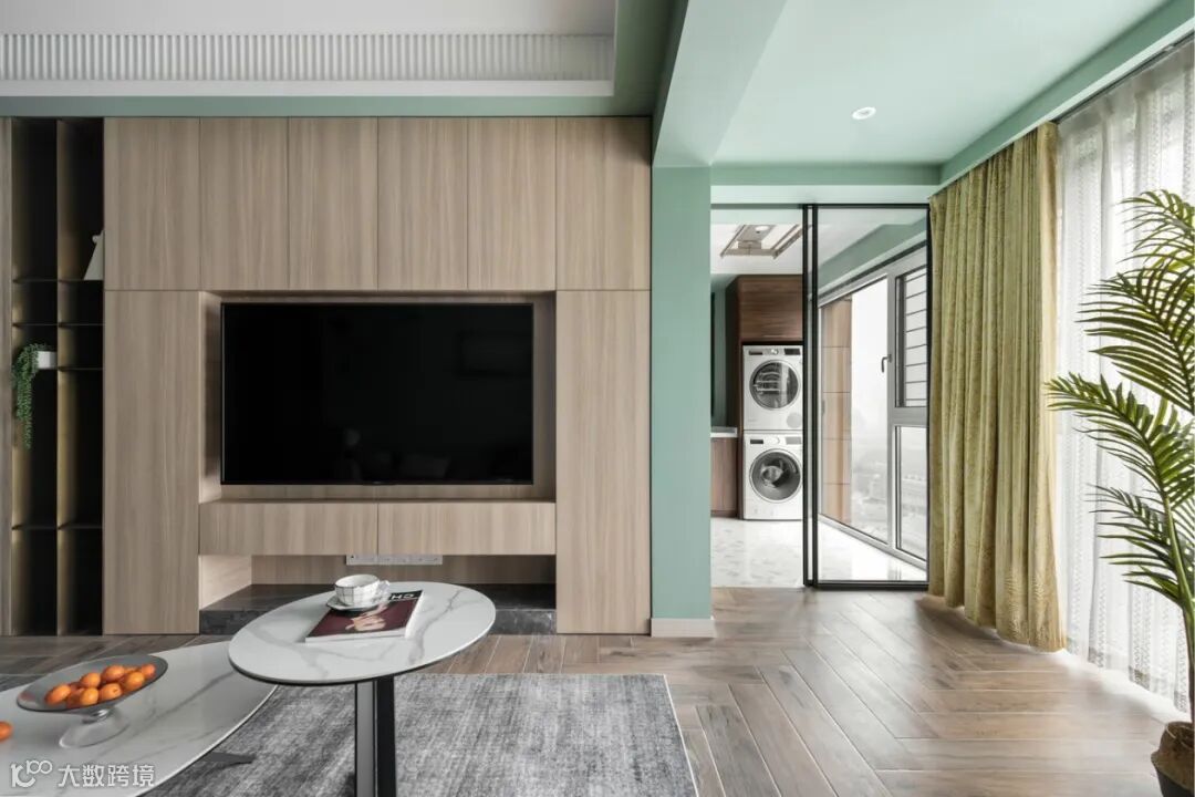 阳台柜门木质统一,与客厅融为一体