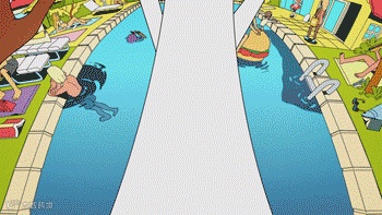《宇宙小奇兵》也是「相似姿态」转场的极佳范例,重点是无敌帅的角色动画,挤压到动态极张时瞬间切换成另一个角色,流畅到你完全忽视转场。