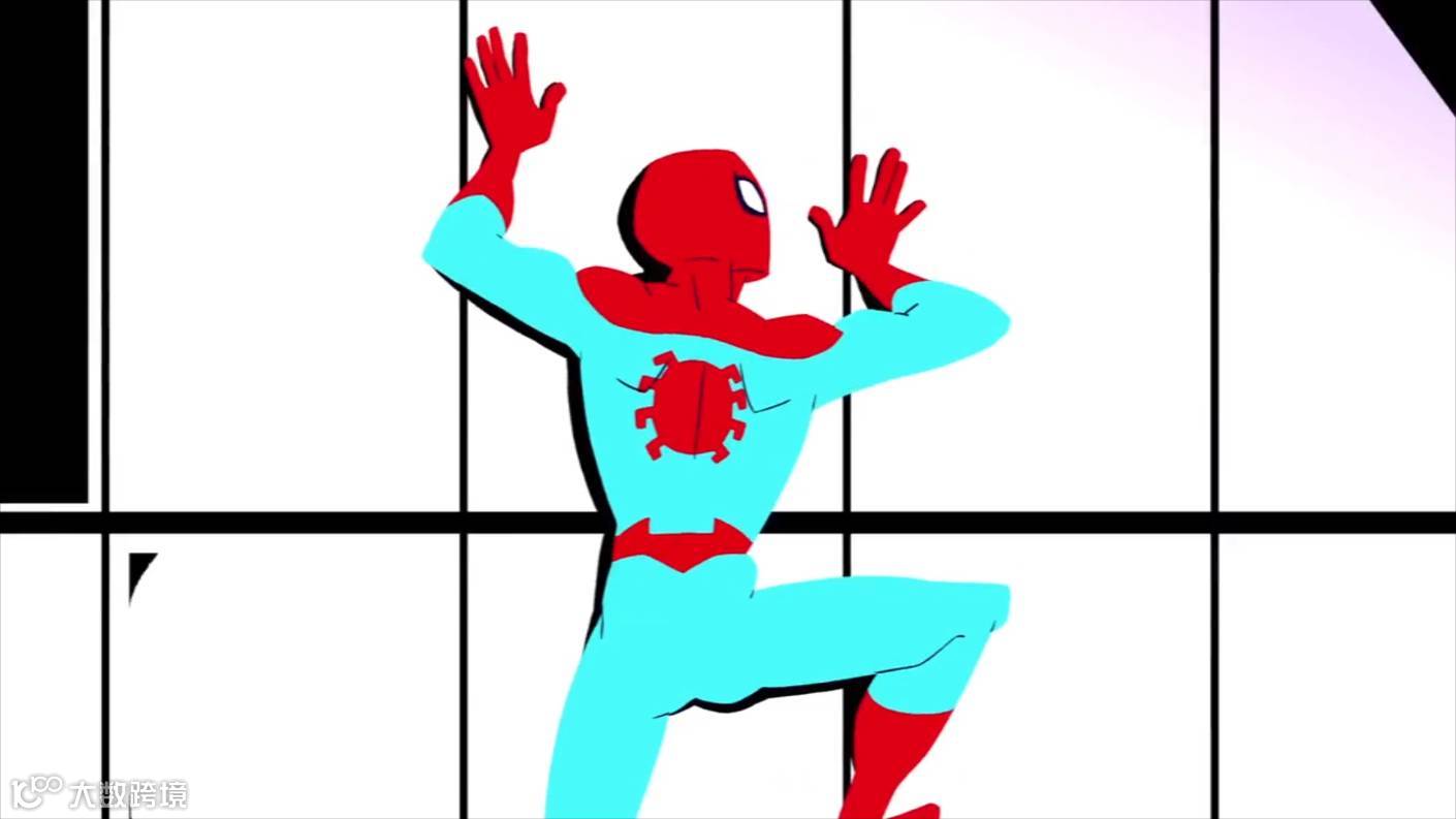 这边虽然只是用来切换蜘蛛侠与彼得帕克的身份,有趣的是,同个姿态,上一秒是英勇挥拳之后,下一秒却是站不稳要跌倒啦,呈现出两个身份给人的冲突印象。